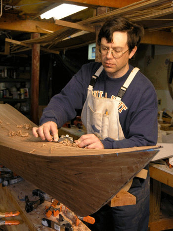 Eric has enjoyed building things since childhood and hasn't stopped for almost 50 years. Starting with model boats, he graduated to his first full size canoe in 1983, and since has added scores of canoes, kayaks, rowing, and sailing boats, and countless scale models. He was trained as a mechanical engineer and practiced that profession for 20 years. In 1996 he founded Shearwater Boats, offering custom-built strip and stitch-and-glue boats, stock and custom designs, as well as plans and kits for the home builder. Eric’s greatest area of expertise is the computer-generated engineering of complicated and precise plywood boat kits for assembly by amateurs. In 2005 Eric was hired as a house designer for Chesapeake Light Craft. His contributions include the Shearwater and Wood Duck lines, which have been a gigantic success, with over a thousand built. Eric has taught boatbuilding at a number of shops and has mentored the construction of about 200 boats. This experience, and the feedback he gets from supervising the construction of his designs, not only has improved his skills as a builder, but has honed his skills as a designer and teacher. (His name is pronounced "SHAH-duh.")