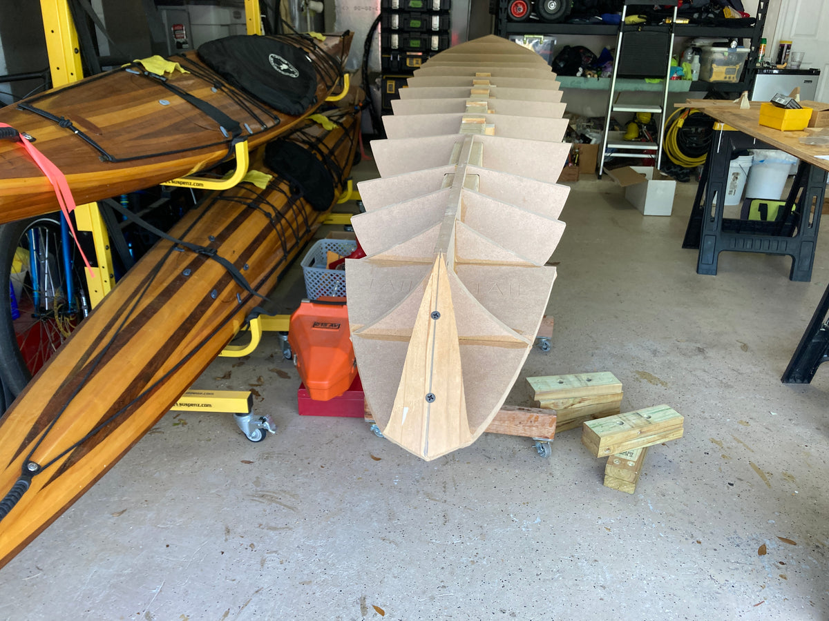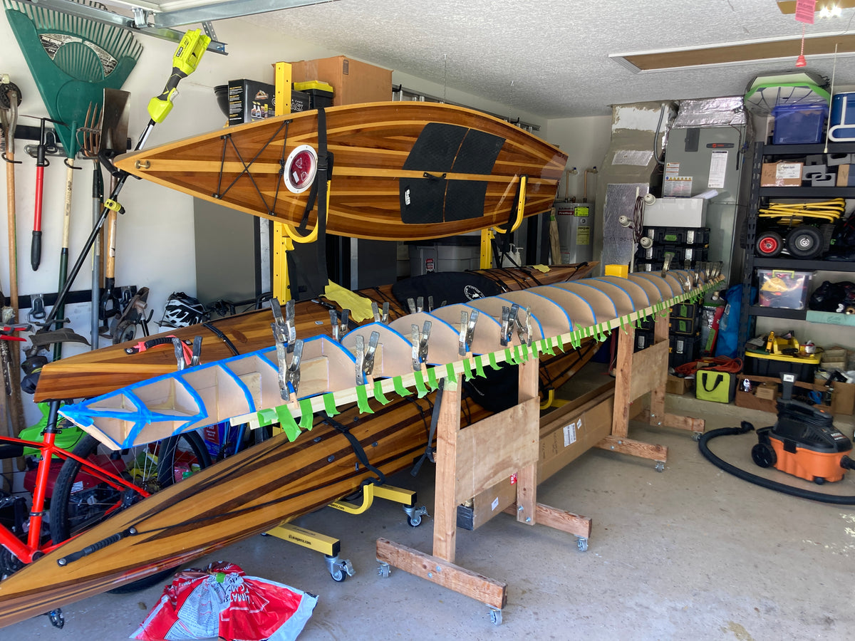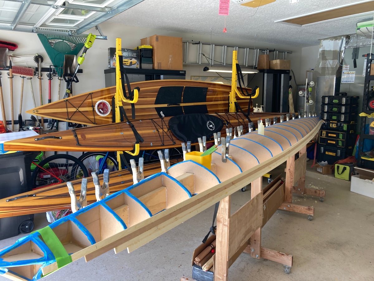 This boat is not for novice boatbuilders. It is a tricky boat to build, and it takes practice to get the most out of it on the water. Its narrow waterline width makes it quite twitchy especially during entry and exit. Once seated the stability increases substantially. There are several difficult steps in the building of this kayak. We do not recommend this as a first kayak project unless you are confident in your woodworking skills. While the boat is not easy to build or paddle, your effort will be rewarded with a beautiful kayak that comes alive on the water.