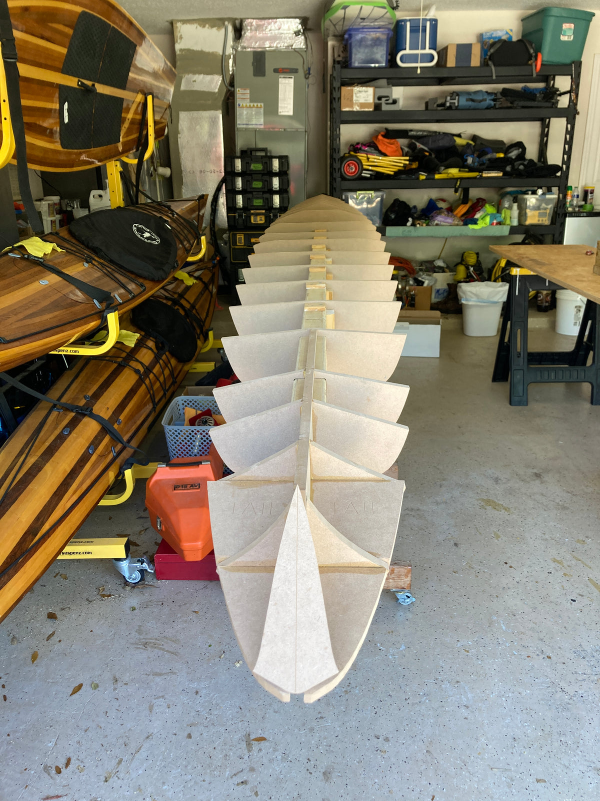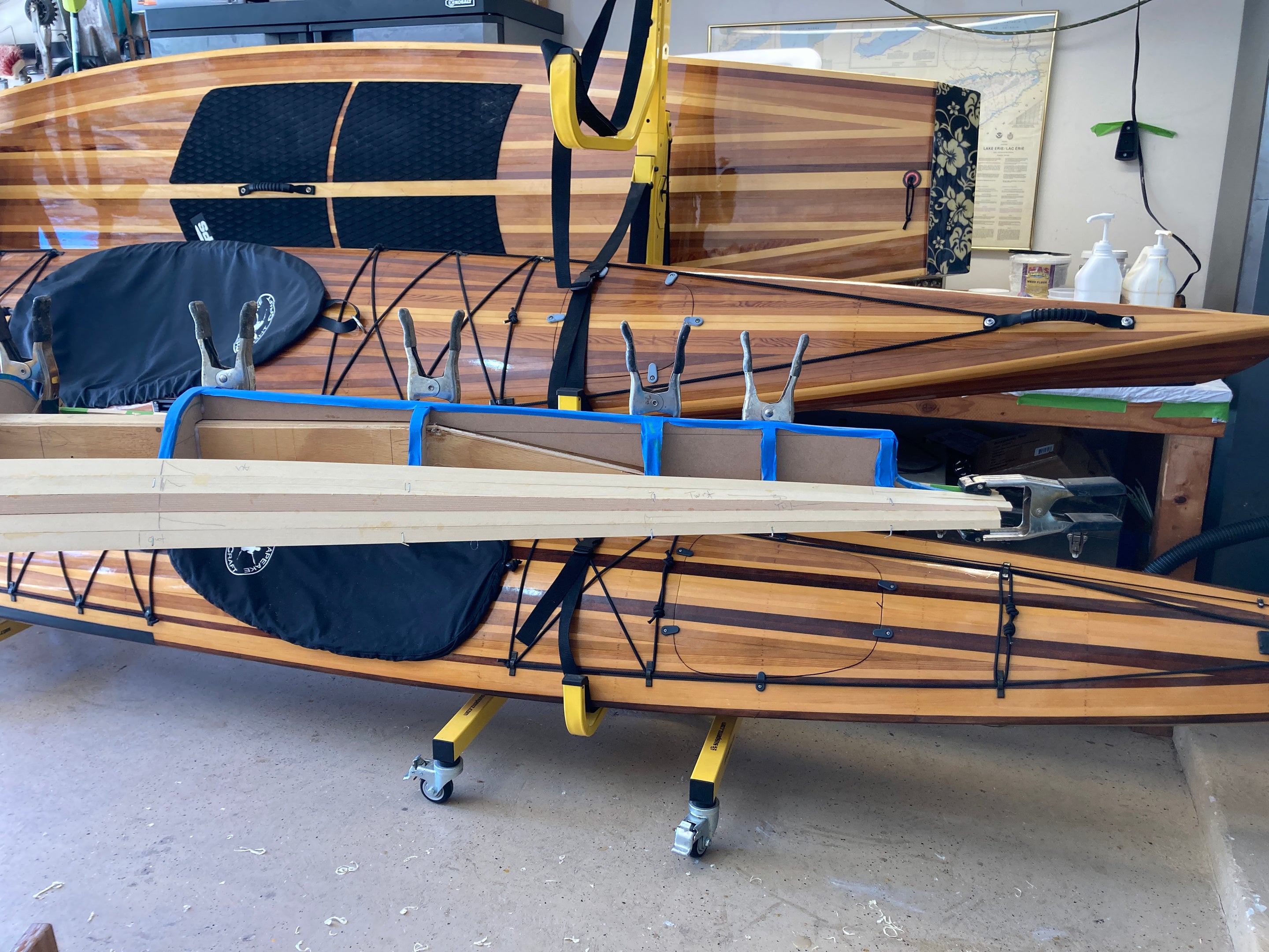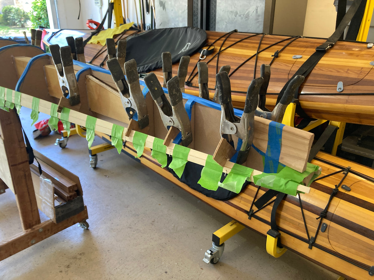 This boat is not for novice boatbuilders. It is a tricky boat to build, and it takes practice to get the most out of it on the water. Its narrow waterline width makes it quite twitchy especially during entry and exit. Once seated the stability increases substantially. There are several difficult steps in the building of this kayak. We do not recommend this as a first kayak project unless you are confident in your woodworking skills. While the boat is not easy to build or paddle, your effort will be rewarded with a beautiful kayak that comes alive on the water.