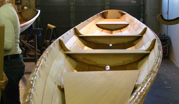 Many builders do use the Annapolis Wherry for fixed seat rowing, with traditional oars and oarlocks mounted on the rails. Because of the sleek lines and low freeboard, we do not recommend fixed seat rowing for folks taller than 5’4”. Taller rowers desiring a fixed-seat rowing boat should consider the Chester Yawl kit.