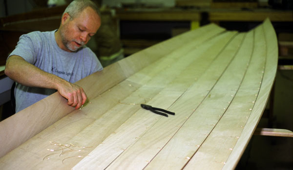 Construction is straightforward, within the reach of anyone with a little woodworking experience. You'll spend around 120 hours, less than a strip-planked kayak.