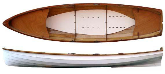 Designer John C. Harris took particular care with the design of the interior. Traditional shin-bruising thwarts were eliminated, opening up the interior for maximum flexibility and sprawling room. This allows the crew to stretch out in a sleeping bag while "camp cruising," or simply to take a nap alongside a shady riverbank. A moveable seat and footbraces are adapted from the work of noted designer L. Francis Herreshoff. Full floorboards, standard in the kit, add even more livability. The open interior also allows for easy installation of a sliding seat unit; more on that below.