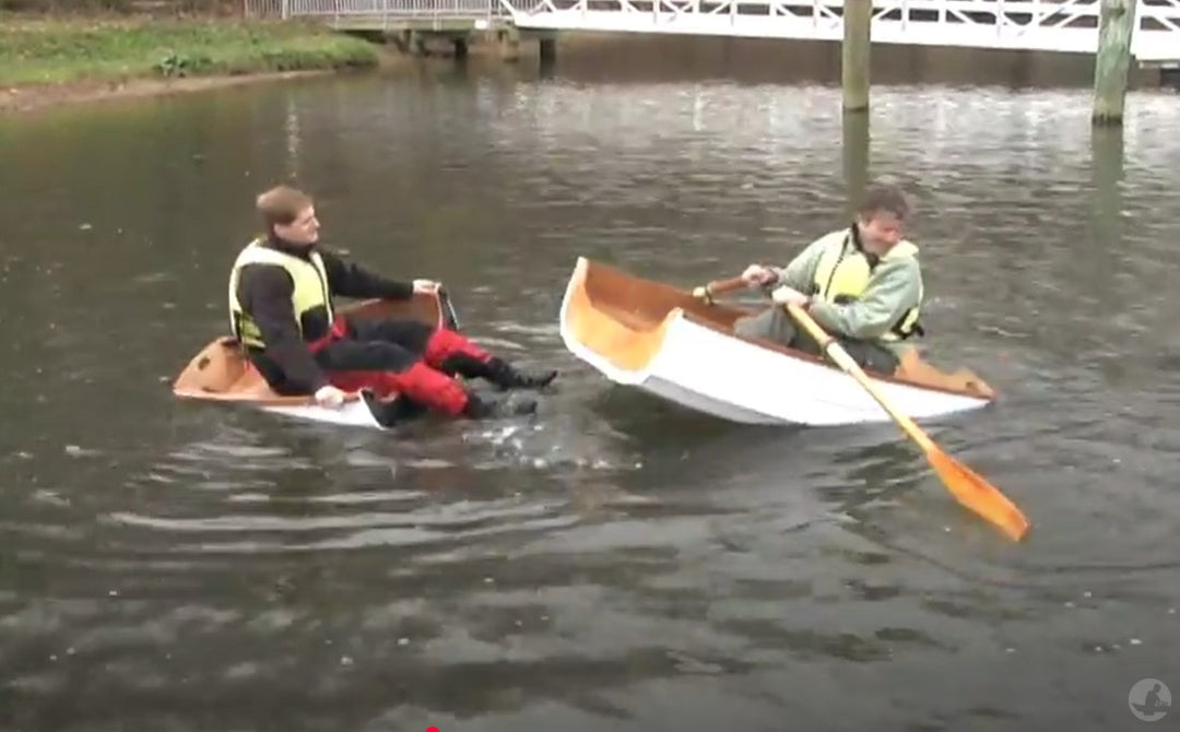 We spent a lot of time refining the Eastport Nesting Pram. We were concerned that the only thing many extant nesting dinghy designs do well is....nest. We have kept all of the fun and function of the stock Eastport Pram---including the sailing rig---with no compromises for its nesting function. The nesting version is still just as easy to build. Though the nesting components mean that the assembled Eastport Nesting Pram is slightly heavier with its sailing rig on, when rowed against a standard Eastport Pram, it is just as fast.