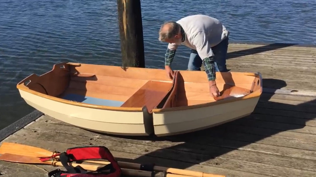 A winning alternative to the inflatable is the Eastport Nesting Pram. This design shares its hull form with our stock Eastport Pram. With over 800 of them built, it may be one of the most popular dinghies in the world. The Eastport Nesting Pram has a demountable front half which nests completely in the back half. The "nested" package is a manageable 4'9" x 4'0" rectangle that can be stowed on the decks of boats from large cruising yachts to pocket-cruisers. I can also nicely store in your apartment, RV, shed, or marina. The Eastport Nesting Pram takes two minutes to assemble or disassemble casually. You'd need some sort of pyrotechnic device to inflate (or deflate) an inflatable dinghy that fast.