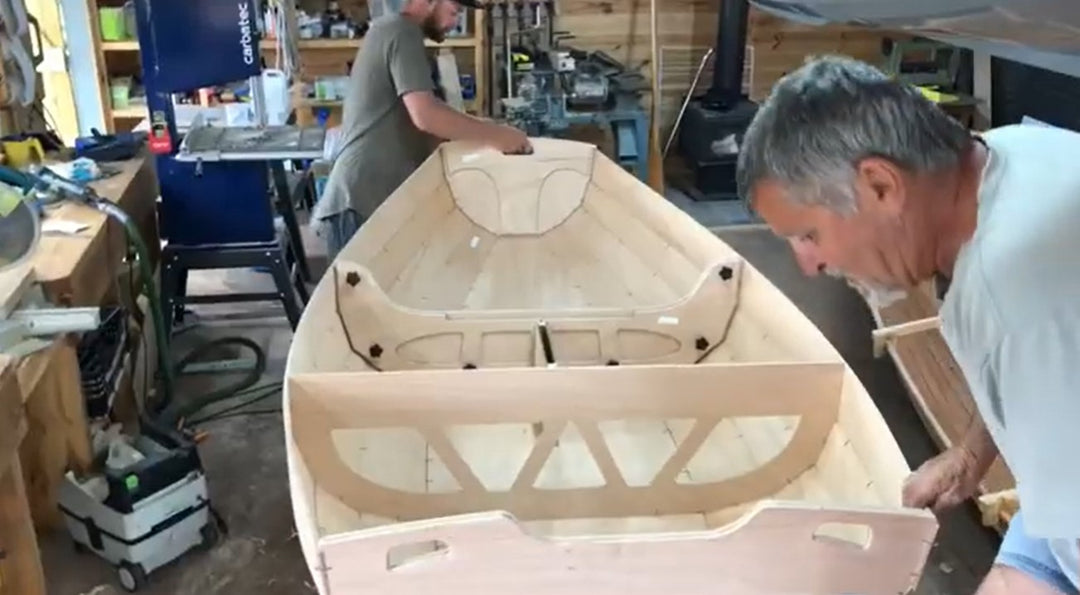 The boat is extremely easy to build. We assembled Hull No. 1 in a weekend, working in our booth at the 2015 WoodenBoat Show in Mystic. The CNC-cut hull parts quickly snap together like a jigsaw puzzle. We figure it is about a 50-hour project to do a nice job.