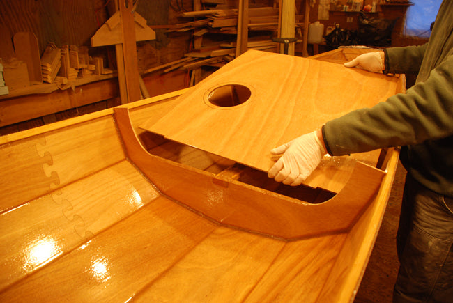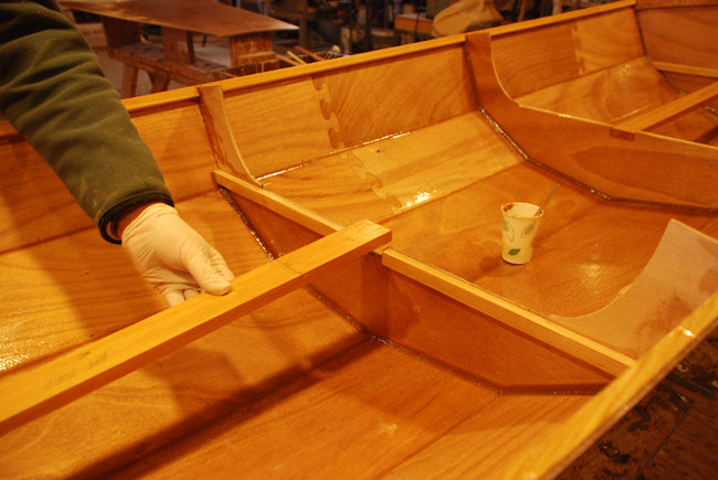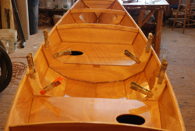 Comparisons to CLC's Annapolis Wherry design are inevitable, and warranted. The massively popular Annapolis Wherry has beguiled hundreds and hundreds of rowers over the years. Compared to the Expedition Wherry, the Annapolis Wherry is probably a little faster in smooth water. But with less freeboard and no deck, it has a much smaller payload (325 pounds) and is less suited to open water. "Everything's a compromise," says Harris. "If you're mostly rowing in protected water, and with light payloads, the Annapolis Wherry will prove faster. The Expedition Wherry is a bit more of a rugged backwoods boat, though, with loads of gear storage and the safety of the decking."