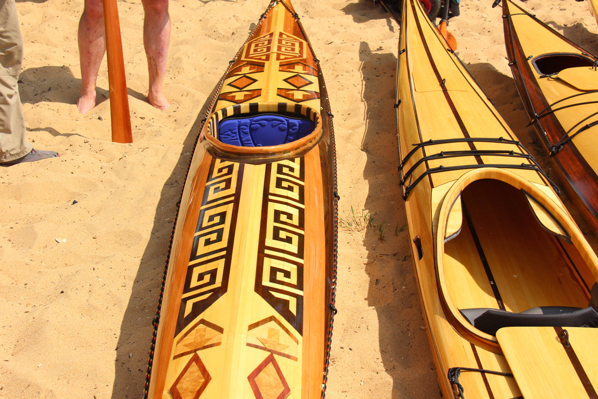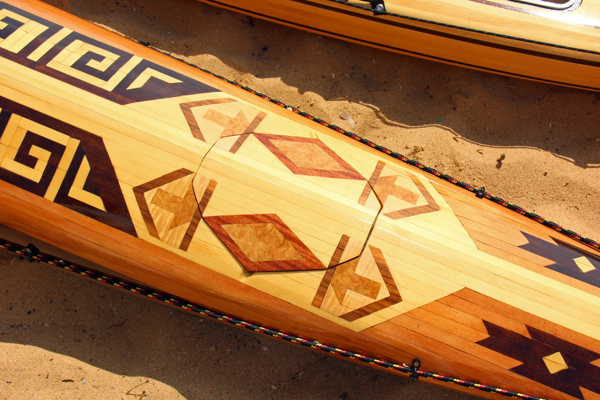 Our strip-built and hybrid kits ship with 50% Western Red and 50% Alaskan Yellow cedar bead & cove strips. Photos on our website and printed materials may show patterns and accent strips with walnut or other materials. Optional walnut strips are available and can be shipped with kit orders