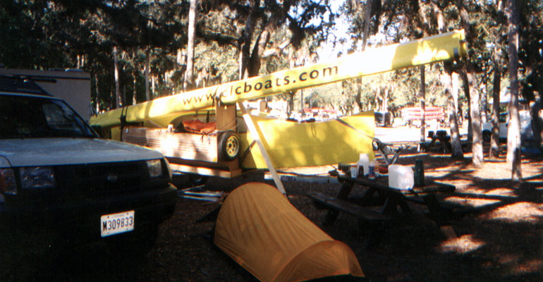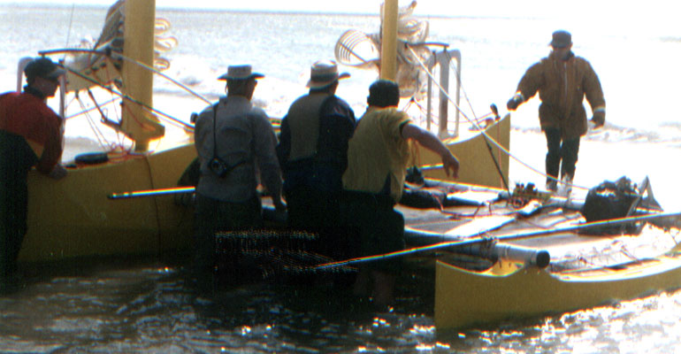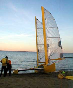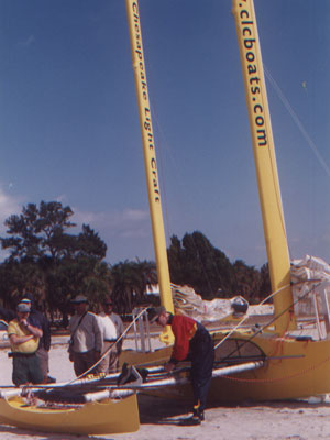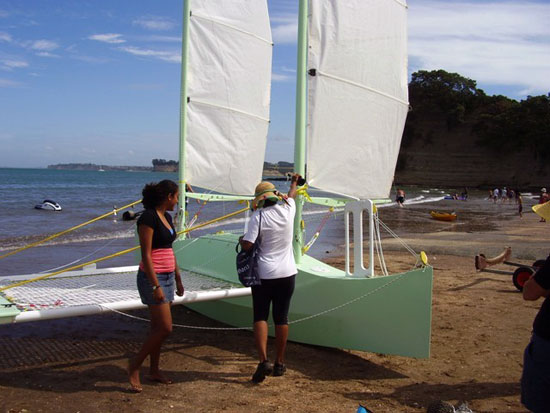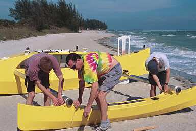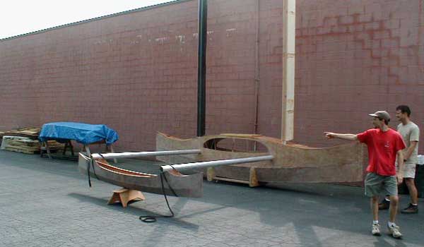 The crossbeams, or "akas," are 4" aluminum tubes. Mbuli can be broken down for trailering in less than an hour.