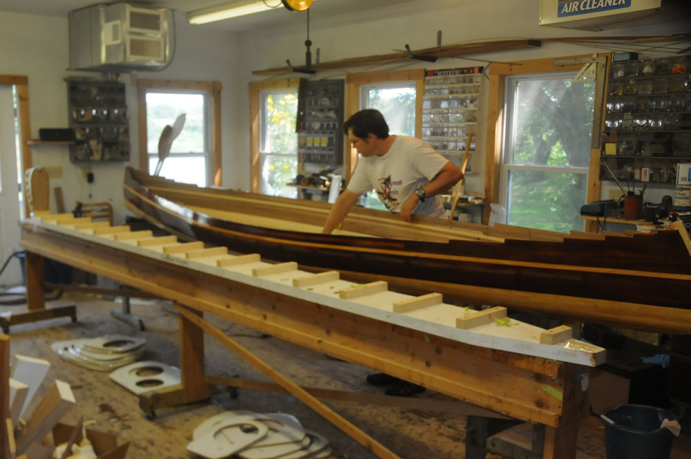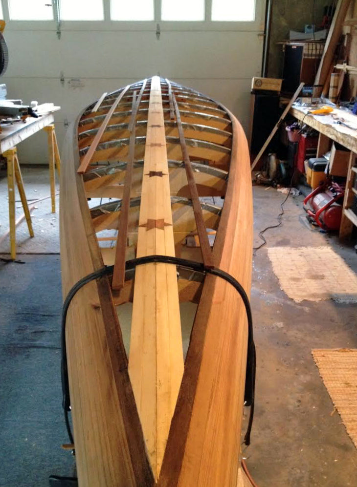 Canoes are the original cedar strip boatbuilding project, going back forty years or more. Canoes are easier than kayaks to build as there is no deck or cockpit coaming, and the gentle hull shapes make stripping over the molds quick and easy. The Mystic River Tandem is a great first wood-strip-construction undertaking.