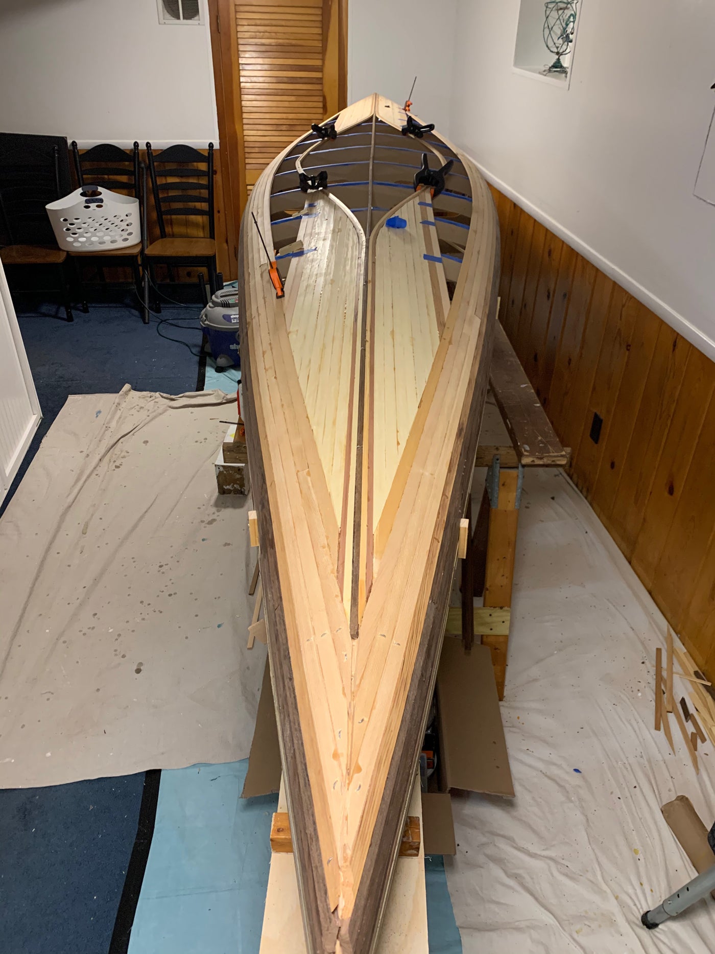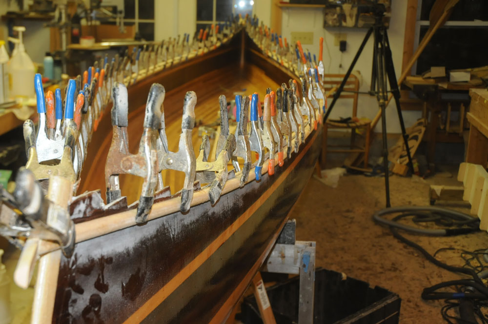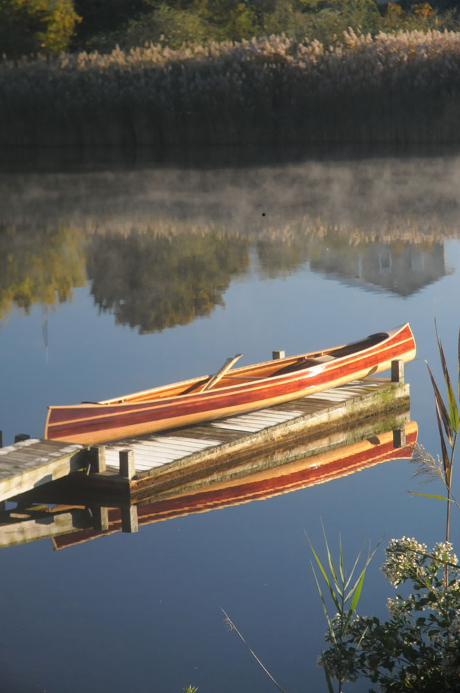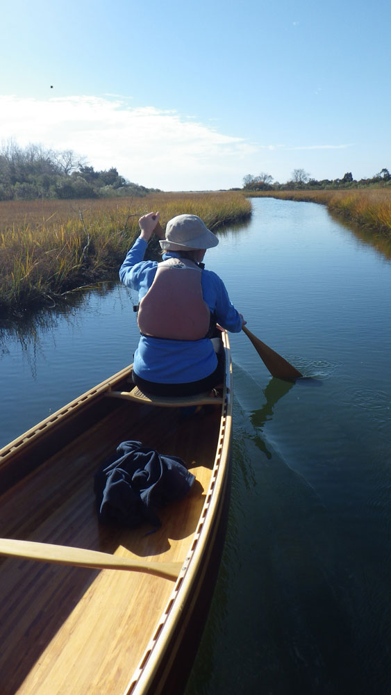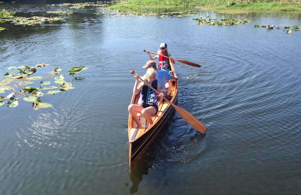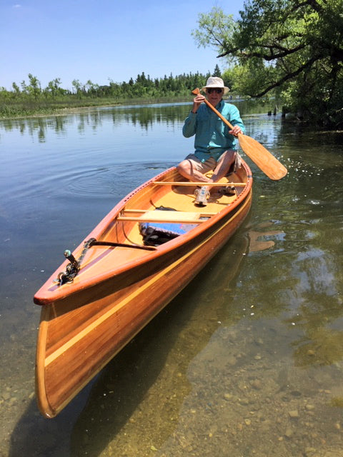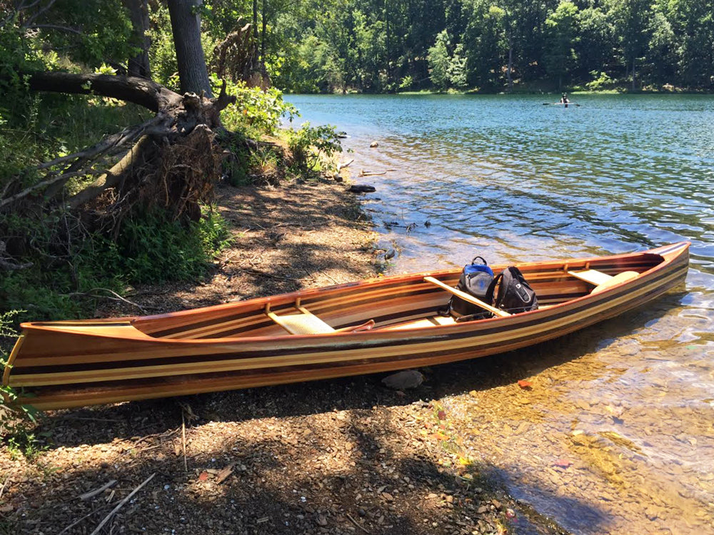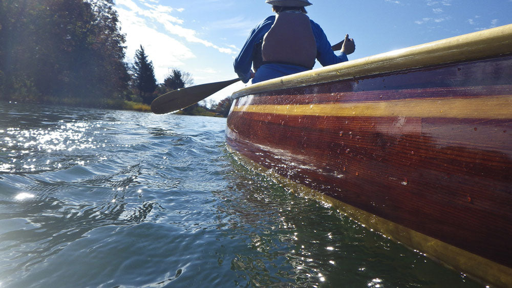 "My wife Robin and I wanted a boat that we could easily drop in the water after dinner and enjoy a nice evening paddle with a minimum of fuss and bother," Nick says. "We wanted it to be a joy to paddle, comfortable, and efficient. With classic lines, graceful recurved stems, and nice tumblehome, this strip-planked canoe design would be at home drifting along the shore in the Adirondacks, or across a harbor in Maine. Robin and I most often use our canoe to explore the waters here in Groton and Mystic, Connecticut."