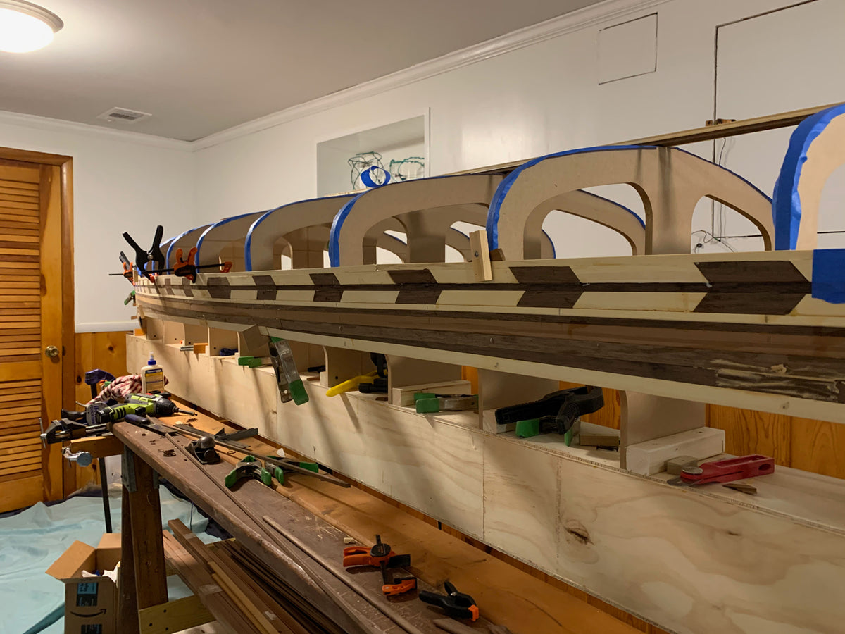 Our strip-built and hybrid kits ship with 50% Western Red and 50% Alaskan Yellow cedar bead & cove strips. Photos on our website and printed materials may show patterns and accent strips with walnut or other materials. Optional walnut strips are available and can be shipped with kit orders.