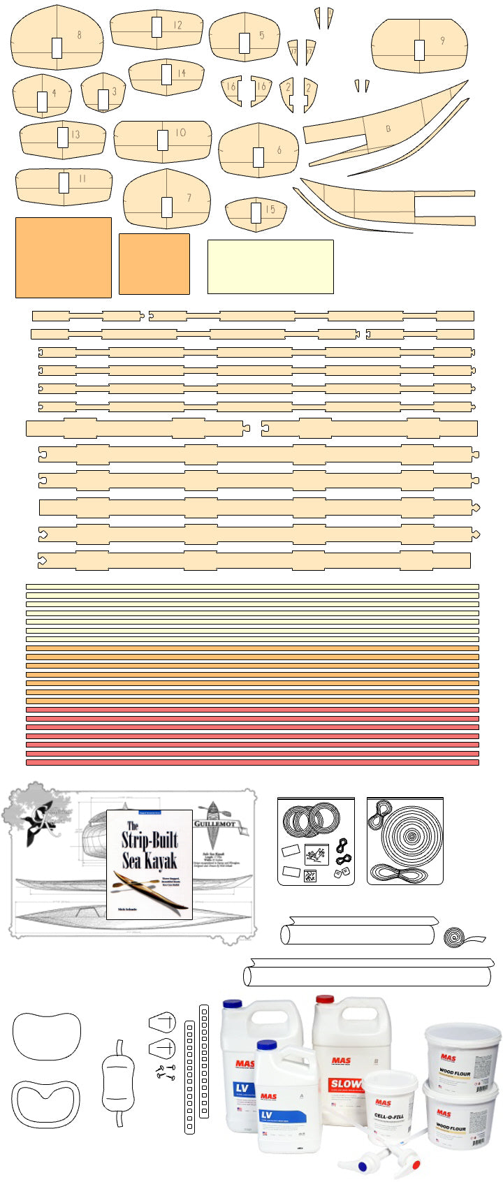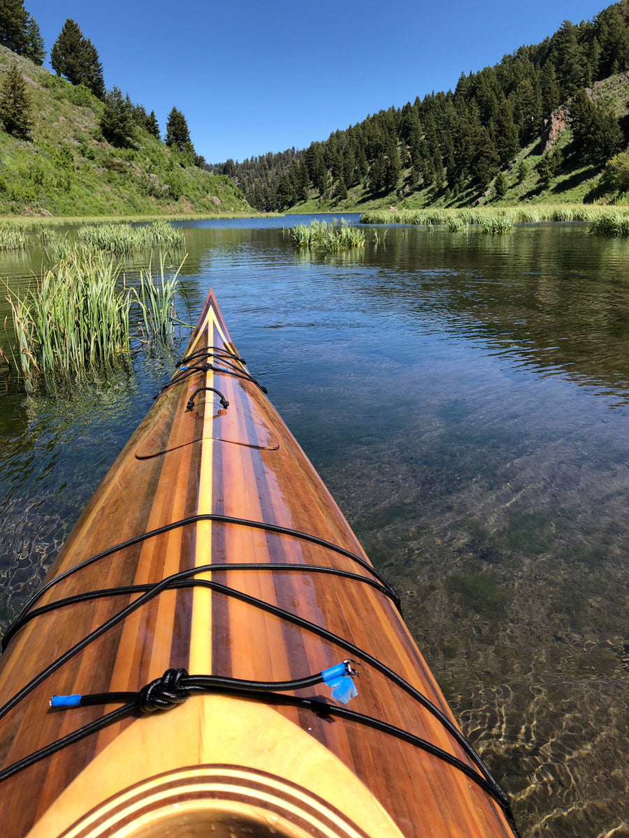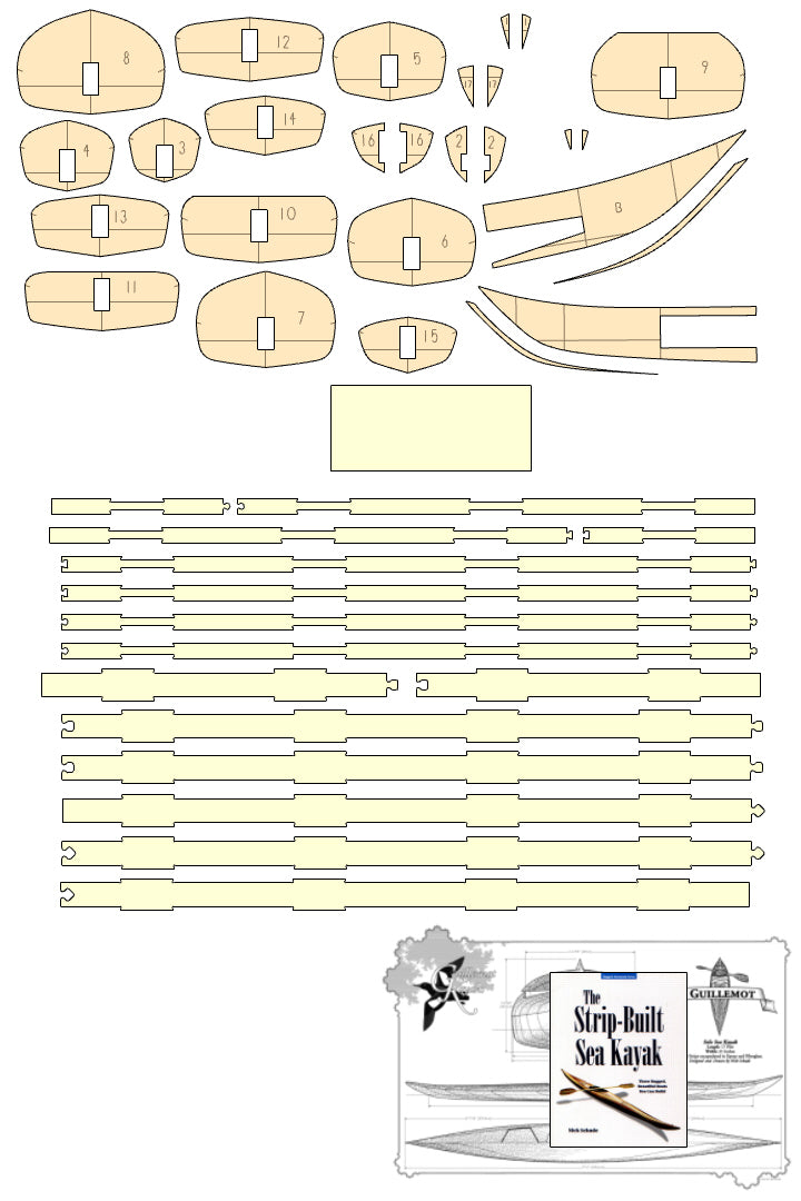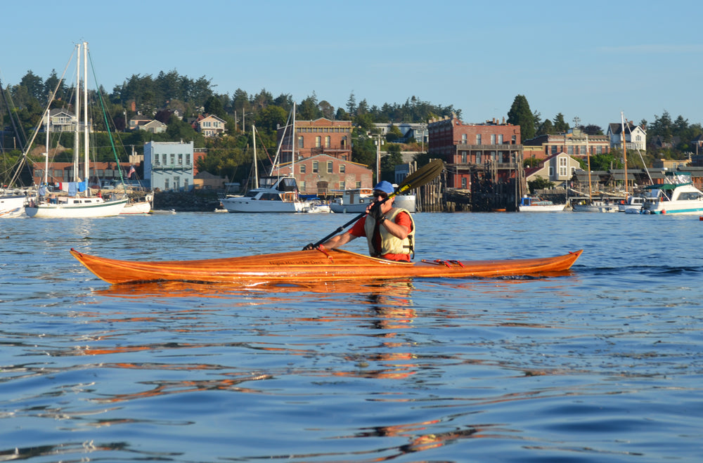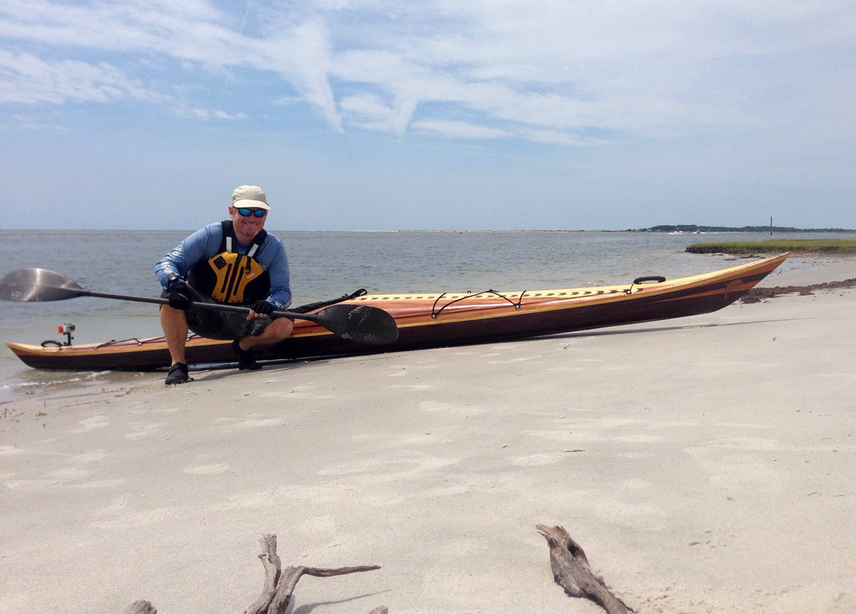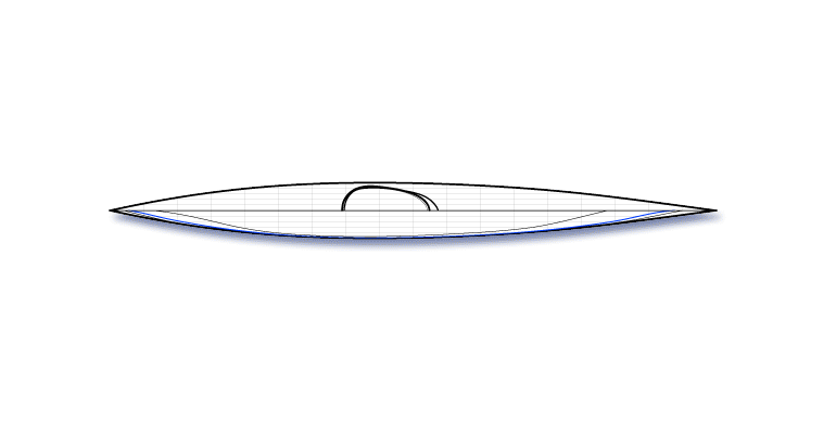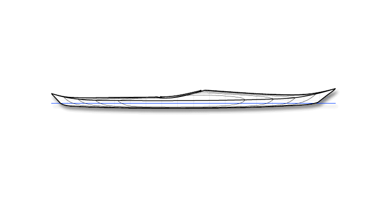 The Night Heron line is an evolutionary branch of Nick Schade's line of Guillemot kayaks. Nick studies the lines of the Inuit Boats of Greenland for some of his hull shaping inspiration. This boat brings the volume of the hull out towards the ends more for a higher prismatic coefficient, which means good efficiency at faster speeds. It has fairly hard chines with no concave sections. A slight lean will allow the boat to turn easily. The low back deck permits the paddler to lean back so their head touches the back deck. The foredeck is high enough that most paddlers will be able to get their legs in and out while sitting down.