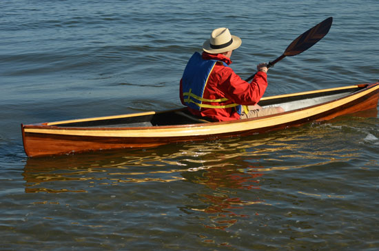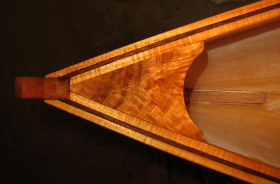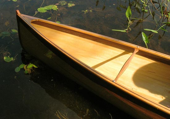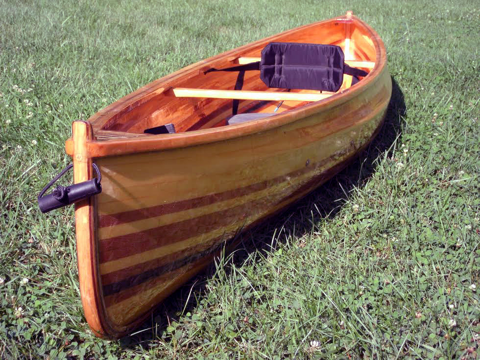 Nick Schade built two interpretations of the pack canoe, the Nymph 10, built with 1/4" bead-and-cove cedar strips, is built in an easier manner than Rushton's method. It does weigh more than Rushton's 10-lb beauty but a weight of 23 lbs it is a very like canoe. The Nymph 12 is 12' long x 26-1/2" wide and will weigh between 25 and 30 pounds, and supports passengers up to 240 lbs.