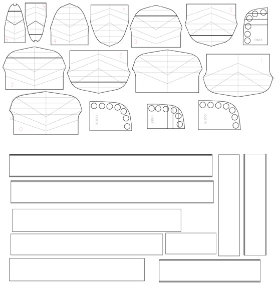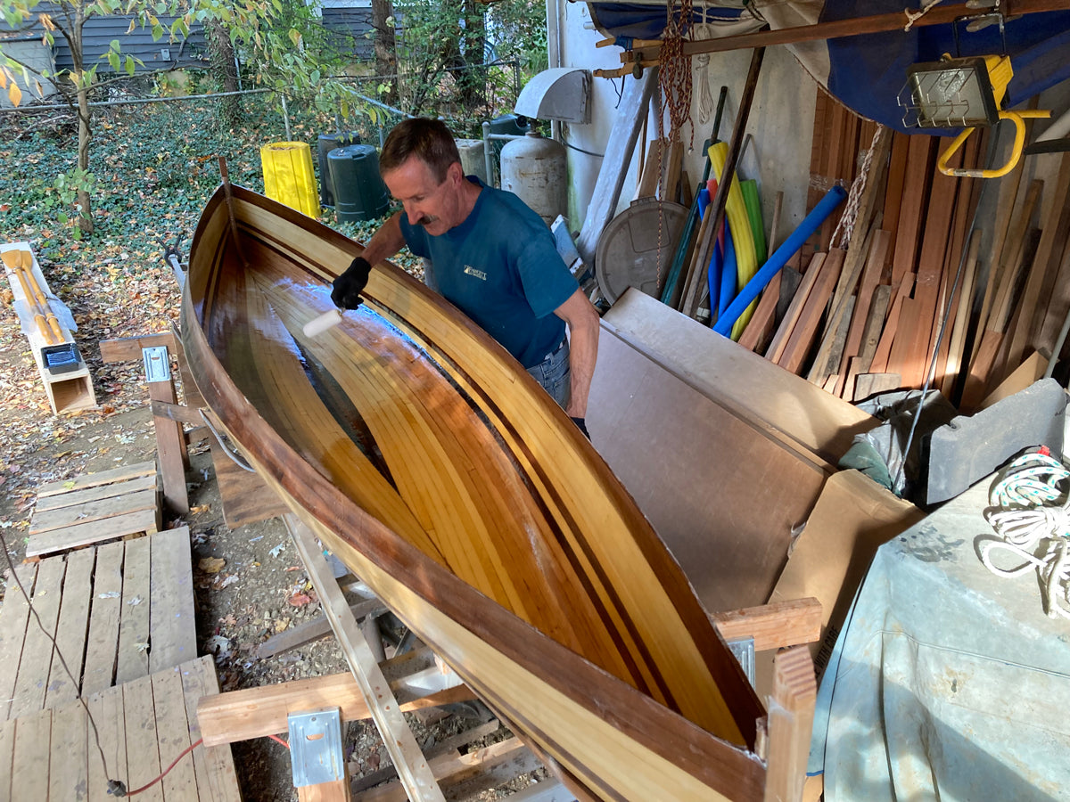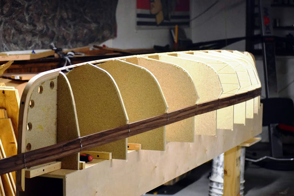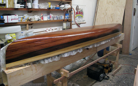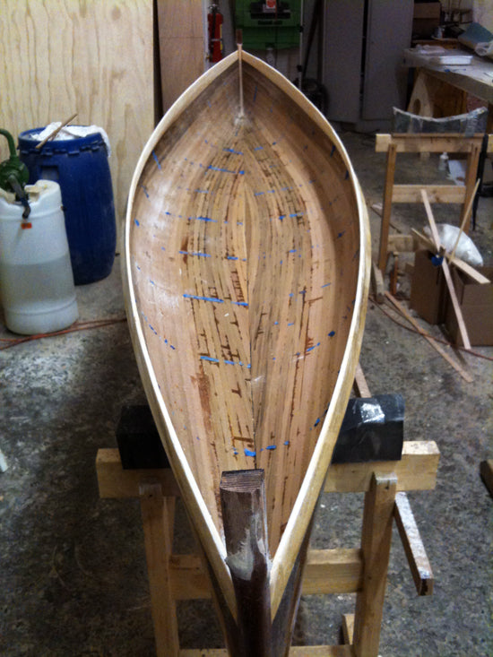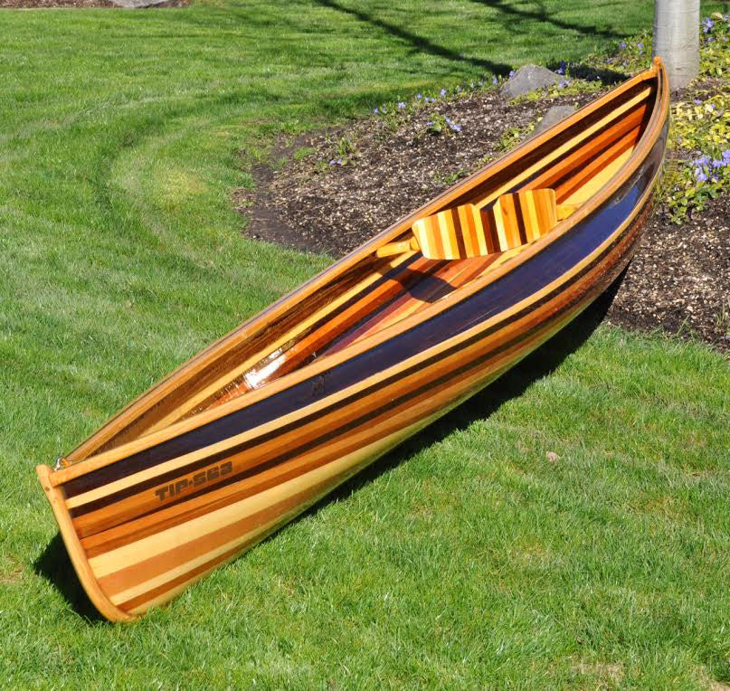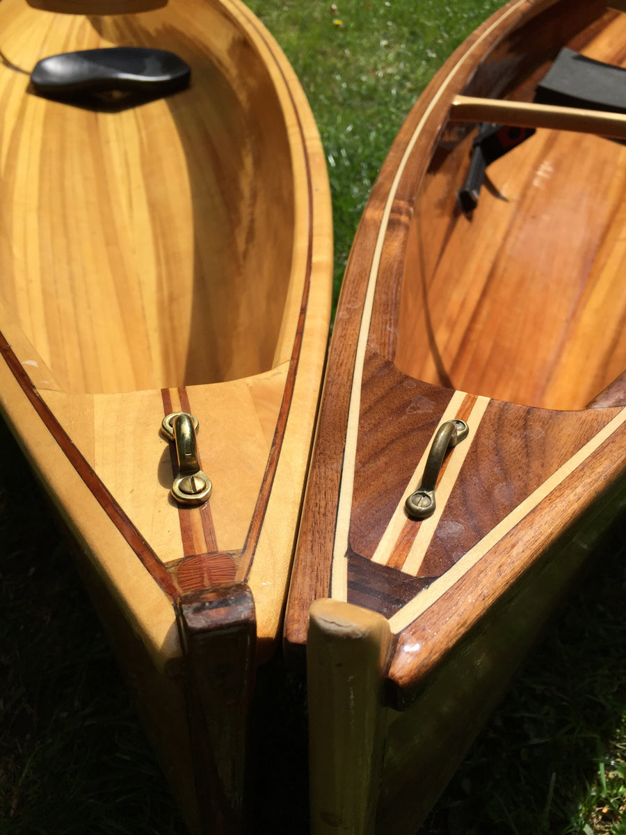 Our strip-built and hybrid kits ship with 50% Western Red and 50% Alaskan Yellow cedar bead-and-cove strips. Photos on our website and printed materials may show patterns and accent strips with walnut or other materials. Optional walnut strips are available and can be shipped with kit orders.