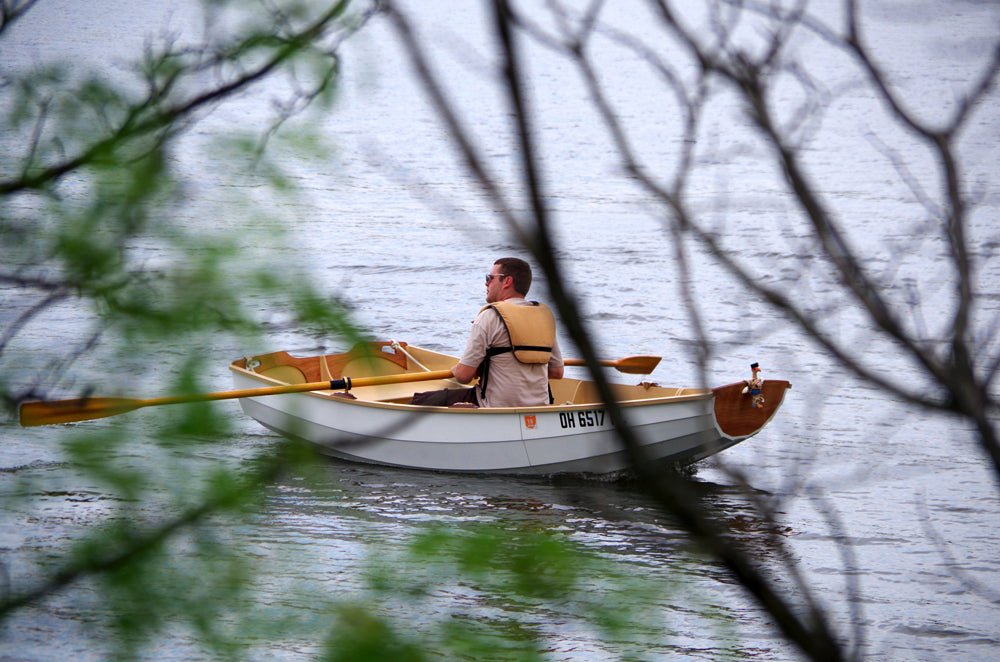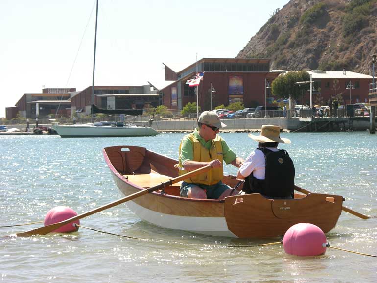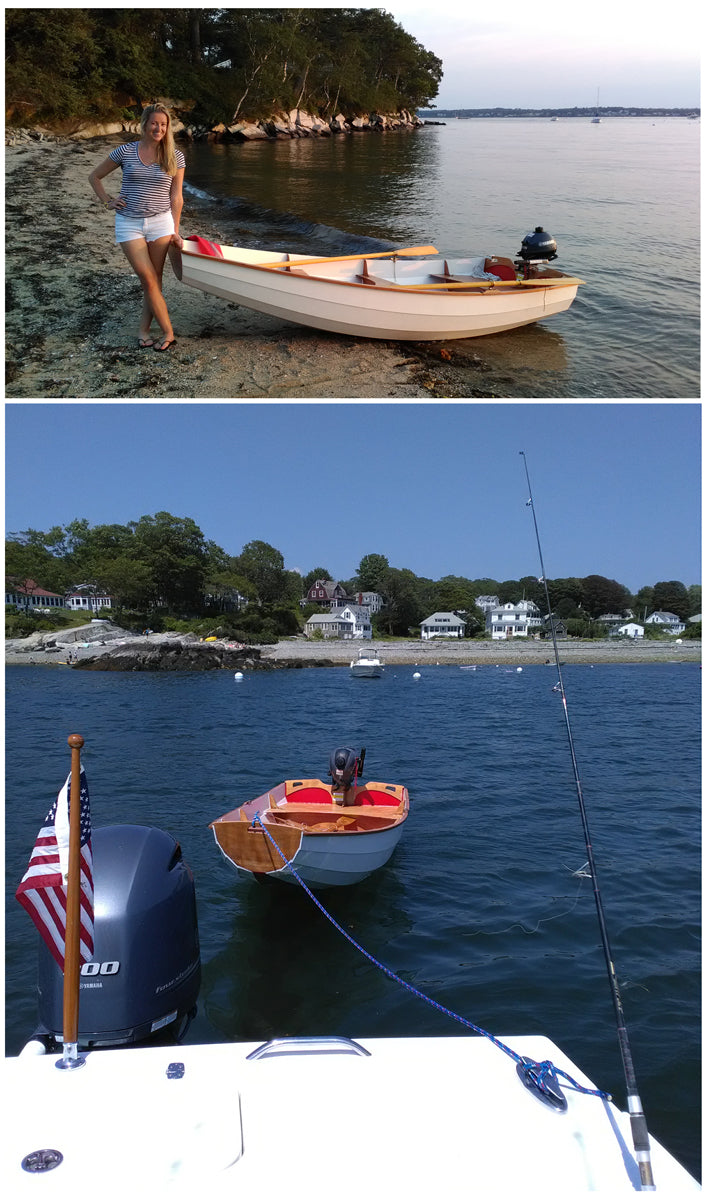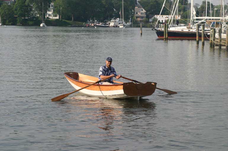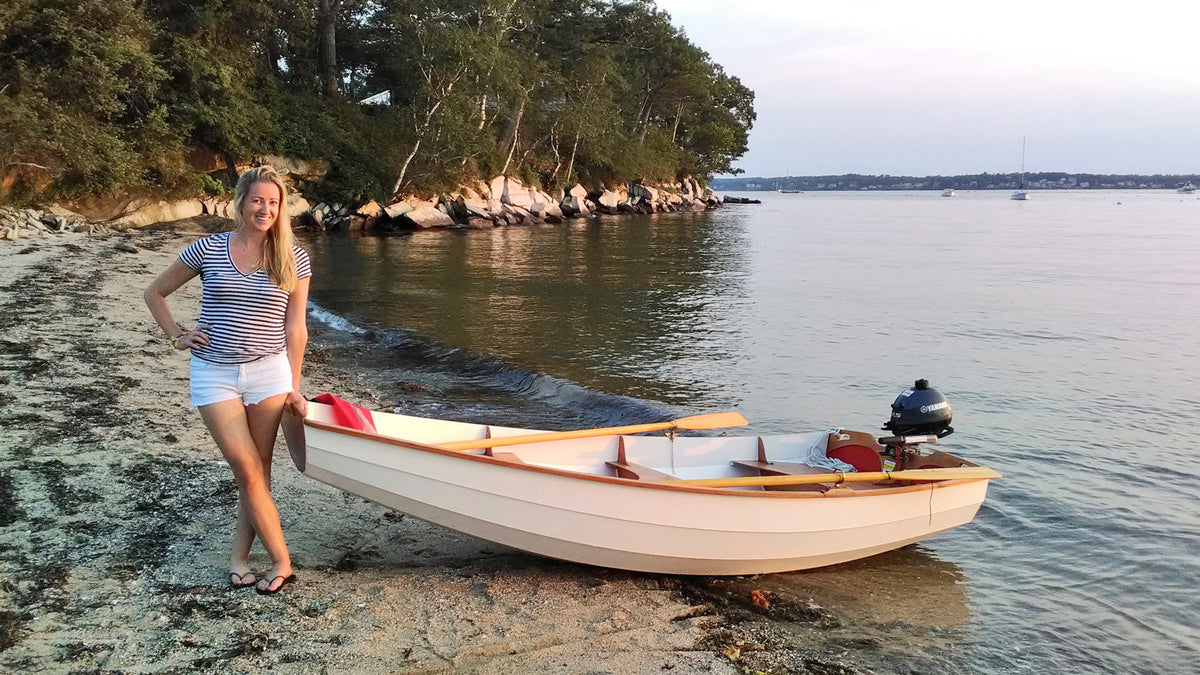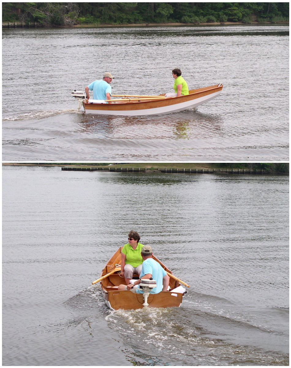 If you have a long harbor to cross, a 2-, 3-, or 4-horsepower outboard will drive the Passagemaker to harbor speed limits and beyond. Transom height is 15 inches, sized for short-shaft outboards. An electric outboard for lake fishing will work great, too. If you don't want to lug around an outboard and smelly gas, you'll be delighted to discover how well the Passagemaker rows: there's plenty of rocker for low wetted surface and the transom won't drag in the water, so it won't slow you down.