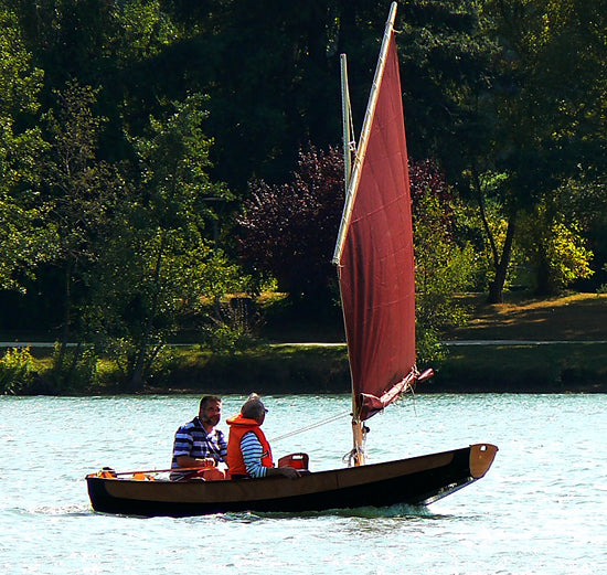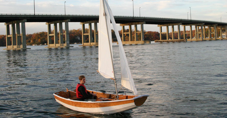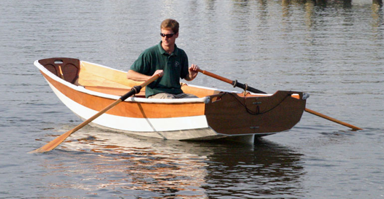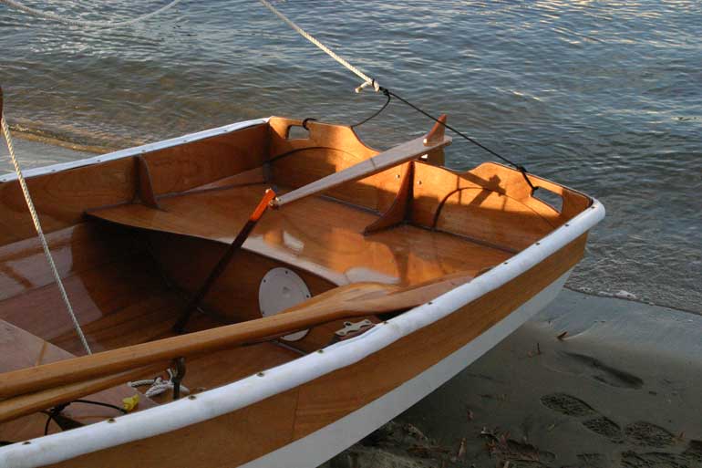 The Passagemaker Dinghy is a handy boat that can be rowed, sailed, and powered with up to three adults aboard. Easy to build. Looks great . Performs beautifully. A smooth glide when rowing, spirited performance when sailing, and steady handling with an outboard make this design a gem in our fleet of graceful build-it-yourself boat kits.