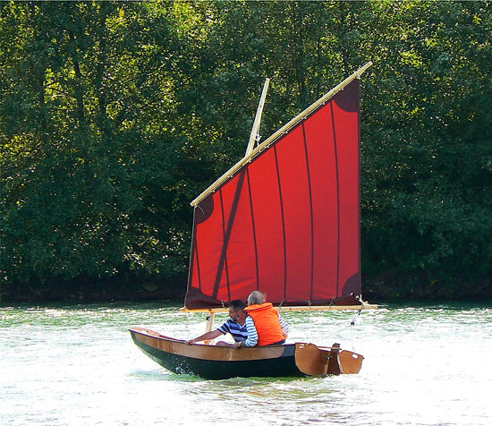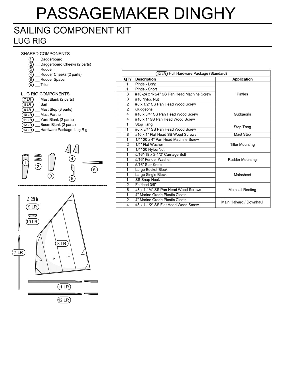 Optional Lug Rig: There is an option for a lug rig, which is substituted for the stock sloop rig. It uses a free standing mast, offers somewhat simpler handling both ashore and on the water. While not as fast upwind, the lug rig still provides serious horsepower and includes a set of reef points for extra windy days.