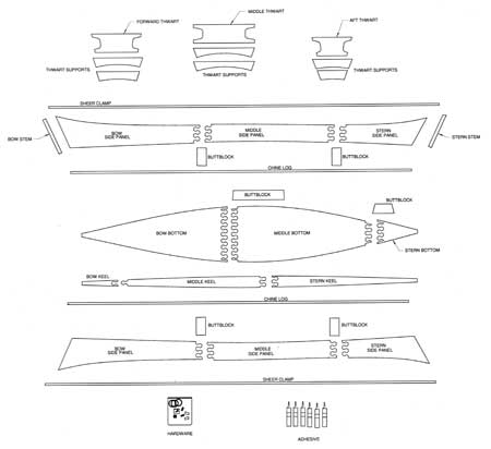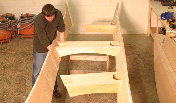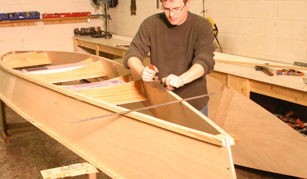 The Peace Canoe has a detailed instruction manual to guide both kit- and plans-builders. The kit is comprised of computer-cut hull panels with puzzle joints to facilitate ultra-fast assembly. The hull is reinforced with traditional stems, sheer clamps, and chine logs, fastened together with polyurethane adhesives (as strong as epoxy but more forgiving!) and bronze ring nails. Those who build from plans can use AC fir plywood or any strong exterior plywood.