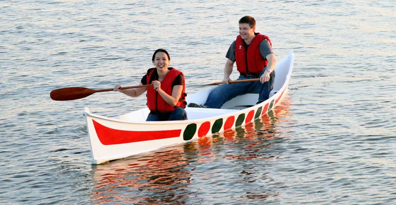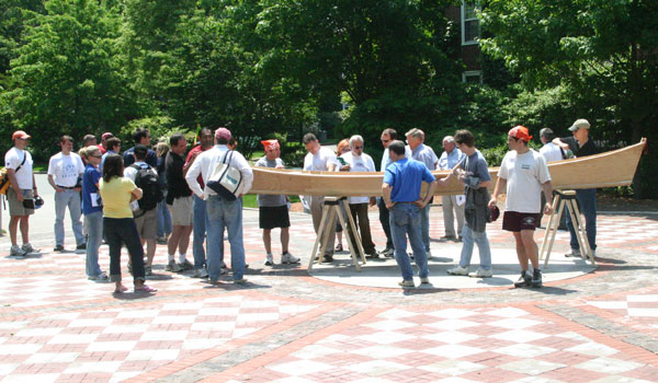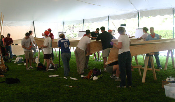 With a one-day assembly time for the kit, the design has been a great fit for marathon boatbuilding events. At the Harvard Business School, faculty and staff built 15 of the boats as a teambuilding exercise. (Harvard had us change the name from “War Canoe” to “Harvard 18.”)