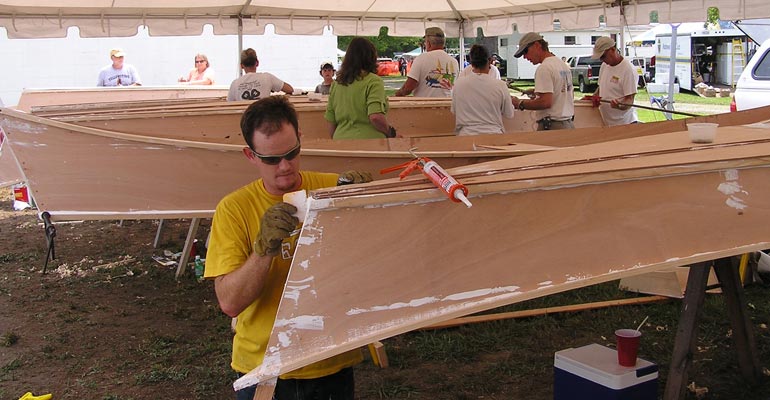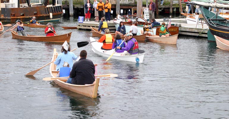 Noting the success of the Harvard exercise, WoodenBoat Magazine selected the design for its Family Boatbuilding event at the WoodenBoat Show in Newport, Rhode Island. “It’s the perfect design,” they said, “but could we call it “Peace Canoe” instead of “War Canoe”? And that’s how the name came about. Through an essay contest, twelve families and groups were selected to build the canoes over two days. WoodenBoat later reported, "Watching their faces as they climbed into the vessels they created and paddled into the harbor was worth the price of admission and garnered time on three local TV broadcasts."