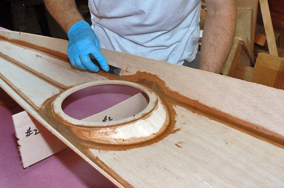 The Petrel Play SG is built stitch-and-glue fashion, with computer-cut hull parts literally assembled like a jigsaw puzzle. “The amount of sculptural detail in the Petrel Play is amazing,” says John C. Harris of Chesapeake Light Craft. “Nick has pushed the realm of what’s possible in plywood to another level.”
