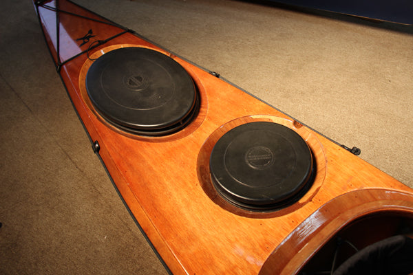 The Petrel SG offers features not found in any other kayak kit. Recessed Seadog hatches fore and aft, AND a recessed Seadog day hatch are standard. The cockpit is also recessed to make rolling easier. A retractable skeg is also standard in the kit.