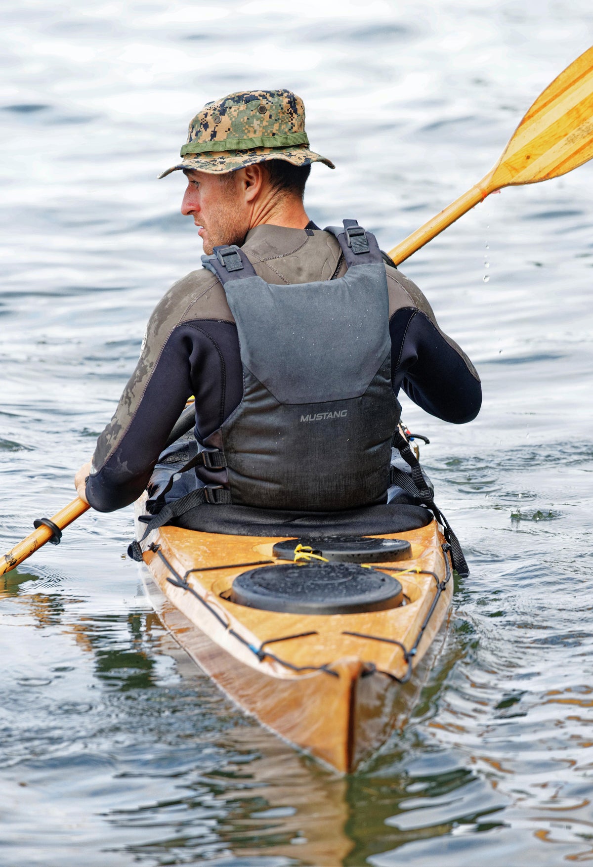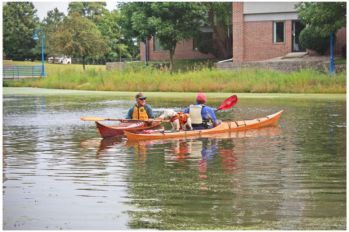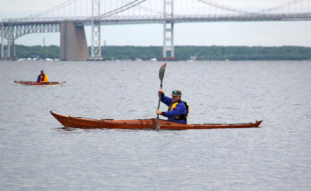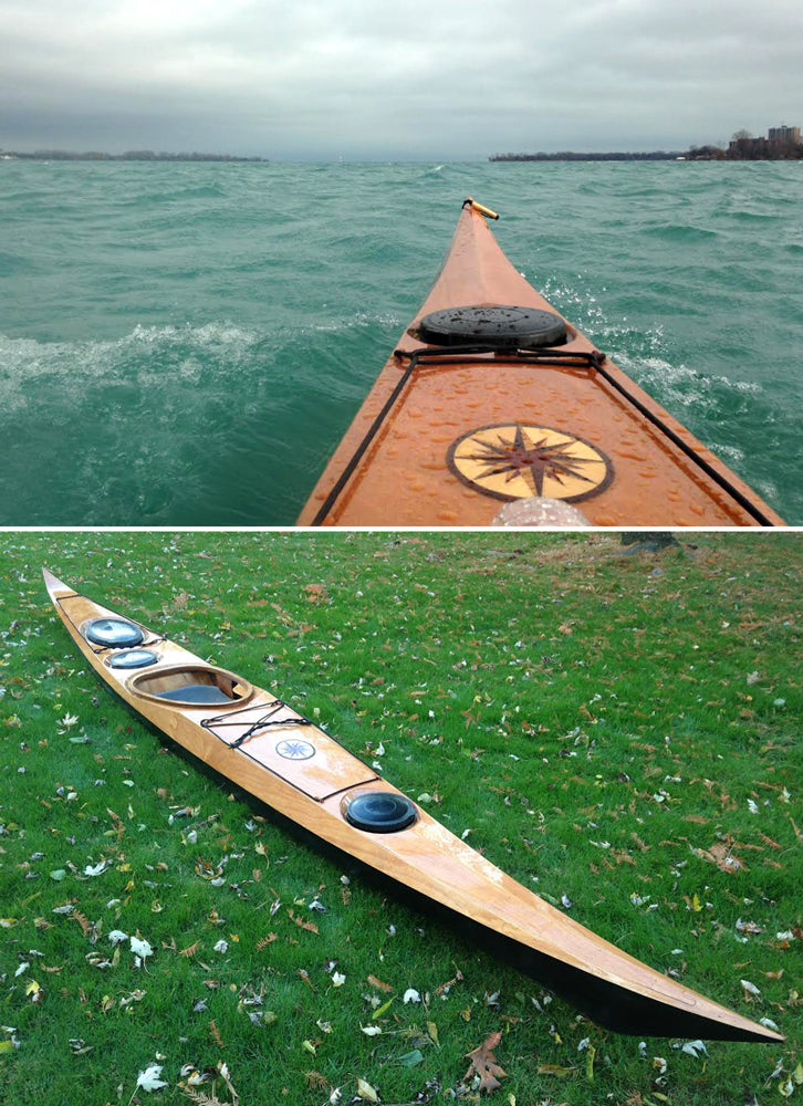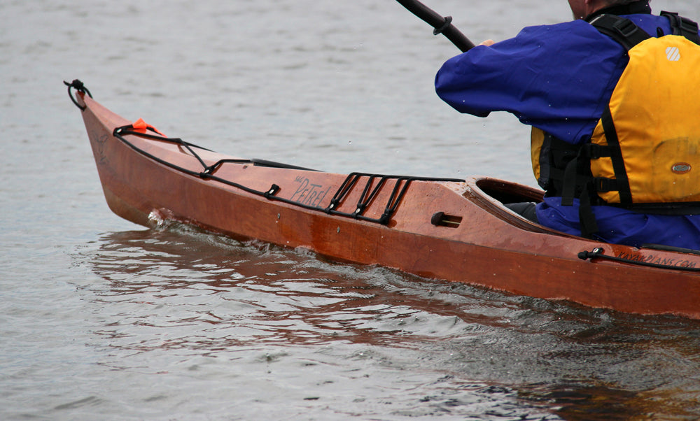 “I’m excited at how it came out,” Schade says. “The Stitch-and-Glue Petrel is as faithful a reproduction of the original Petrel as I could manage in plywood.” Schade maintained the same profile and plan shape and reproduced the transitioning chine of the strip-planked Petrel with multiple chines forward tapering to a single hard chine behind. He also incorporated a retractable skeg and recessed hatches in the deck, including a day hatch behind the cockpit. "Puzzle joints"---one of Schade's signature design motifs---give the Petrel SG great artistic flair. "It is absolutely unique in the kayak kit world," Schade says.