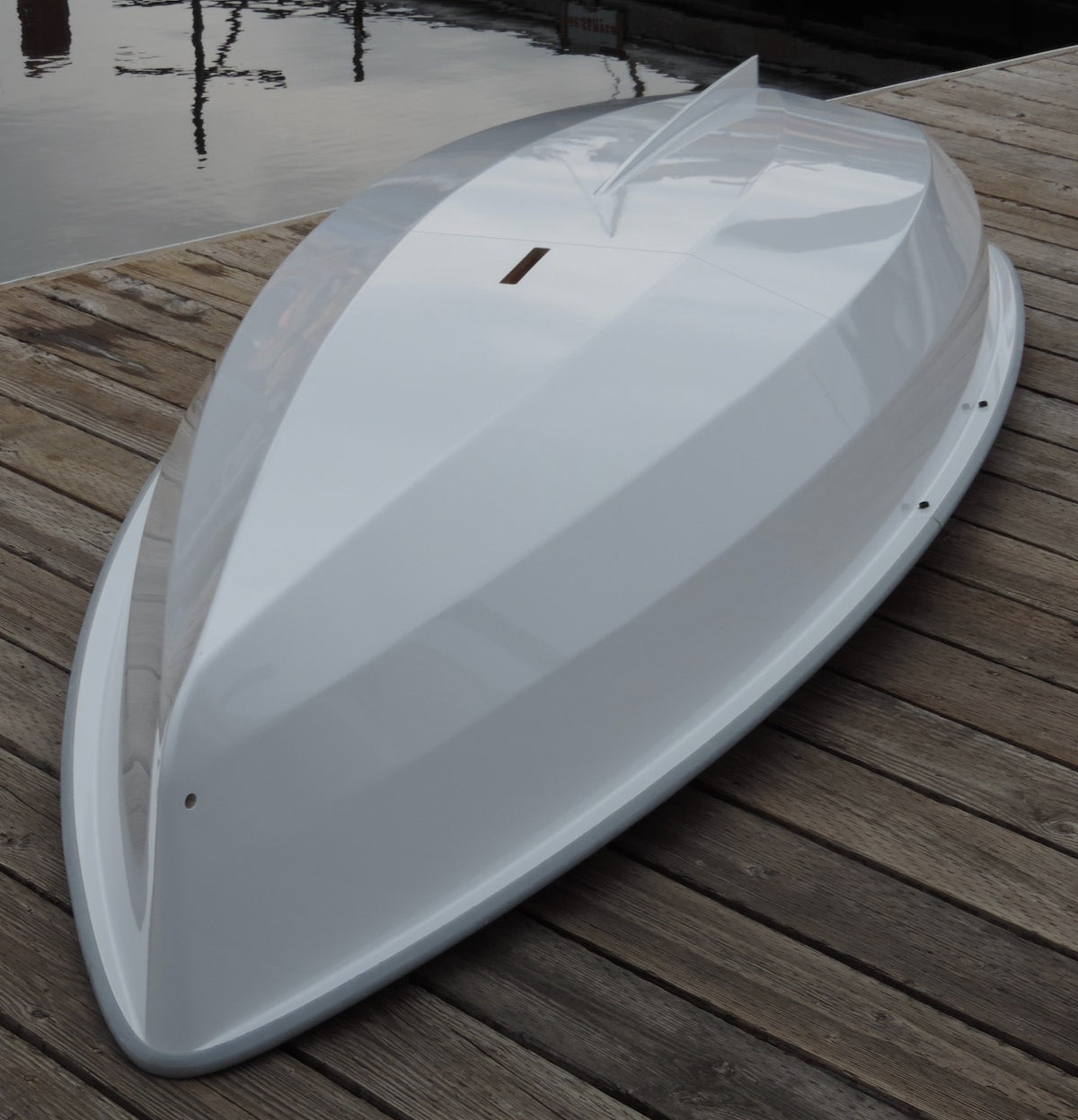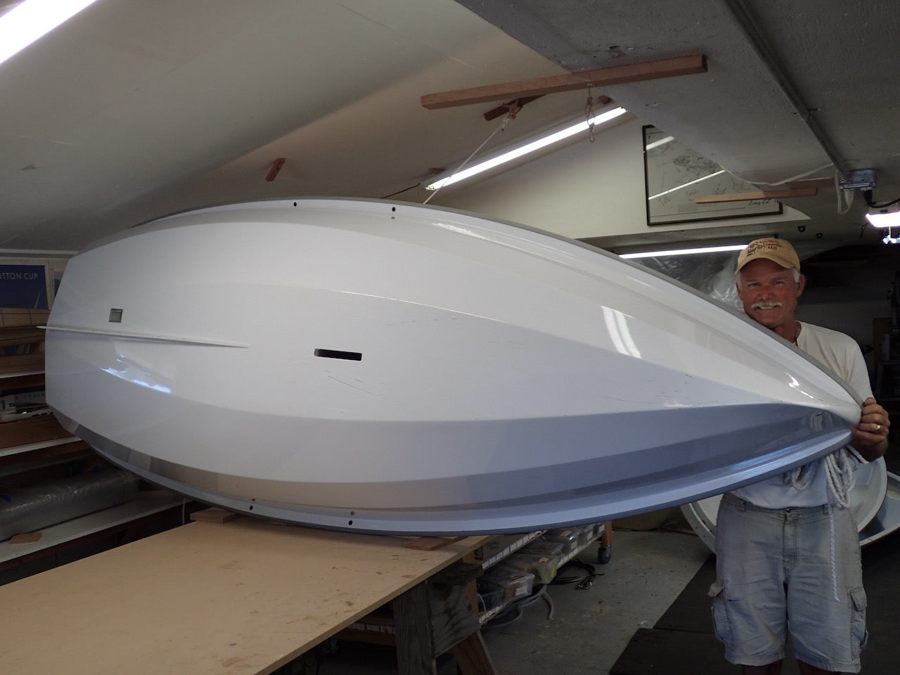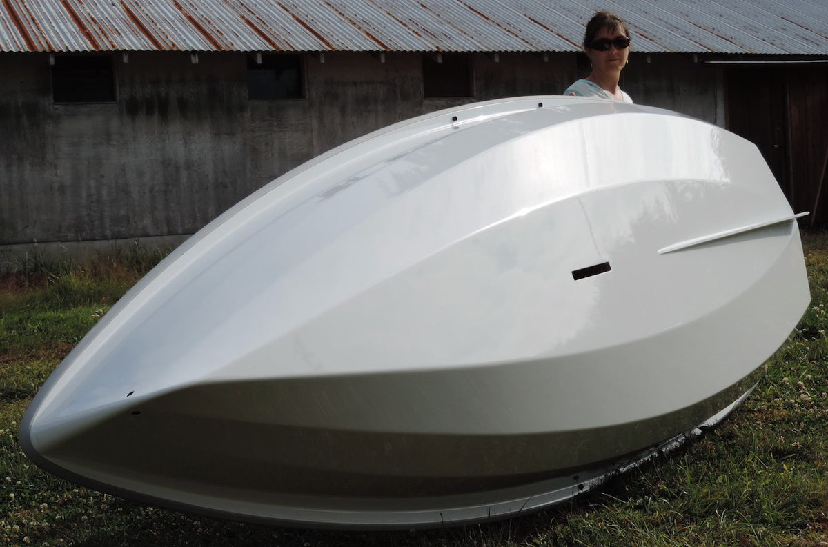 The team at PT Watercraft wants you to understand how special this design is. Thanks to an ingenious connective scheme, the two halves of the PT 11 can be rejoined to become a whole hull while they are in the water. In the Videos section below, you will find several videos produced by PT Watercraft that show how to join and separate the two halves of the boat, how to set up the boat for sailing, and how to recover from a capsize. Another video will show you that the PT11 tows very well (provided that the daggerboard-trunk cap is secured) even when traveling as fast as 15 knots.