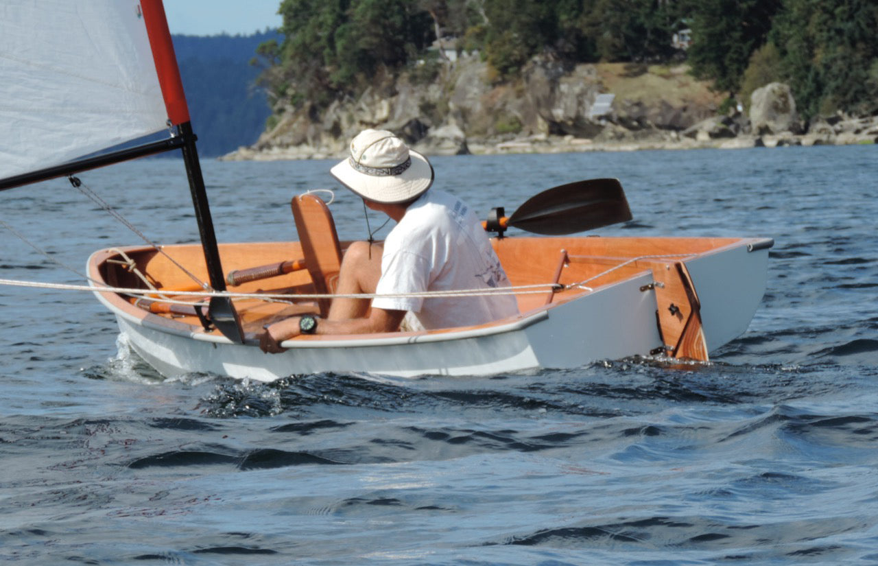 The PT 11 is not a new design, having enjoyed a decade of very careful and incremental development by Russell and Ashlyn Brown of PT Watercraft, a boat-kit company in Port Townsend, Washington. Russell Brown is a wunderkind boatbuilder, designer, and sailor with an international reputation for highly polished and thoughtfully executed wooden boats. Thus, the world took notice when Russell and Ashlyn founded their company and released a nesting dinghy that was several orders of magnitude better than anything else available. Performance is revelatory under both oar and sail