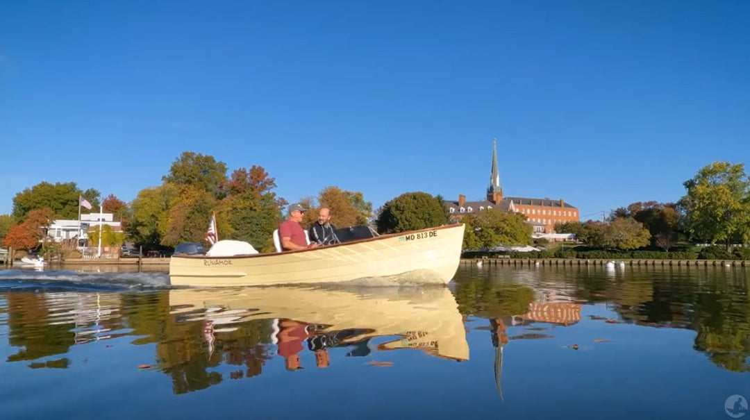 We chose the name "Rhode Runner" for this shapely and able boat, referencing the nearby Rhode River, site of decades of CLC prototype launches, photo shoots, and small boat symposia.