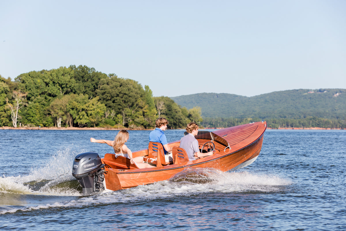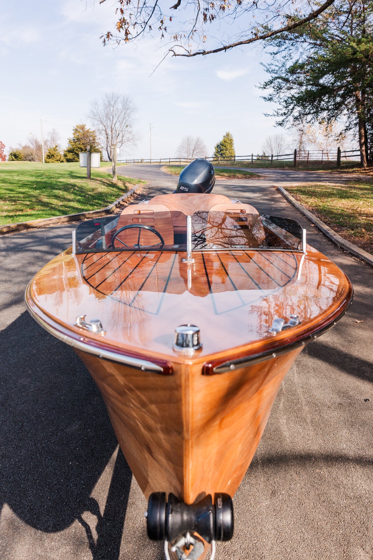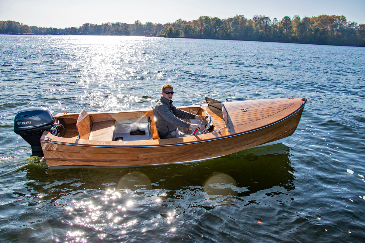The beautiful 1950s-era runabouts are icons of style in the world of wooden boats. We wanted one for ourselves, so we designed this small runabout to echo the grace of the post-war Lyman and Chris Craft runabouts. Our 30 years of experience designing wood-epoxy composite boats allowed us to create a smooth-running powerboat that is light, durable, and fast. And you can build it in your garage!