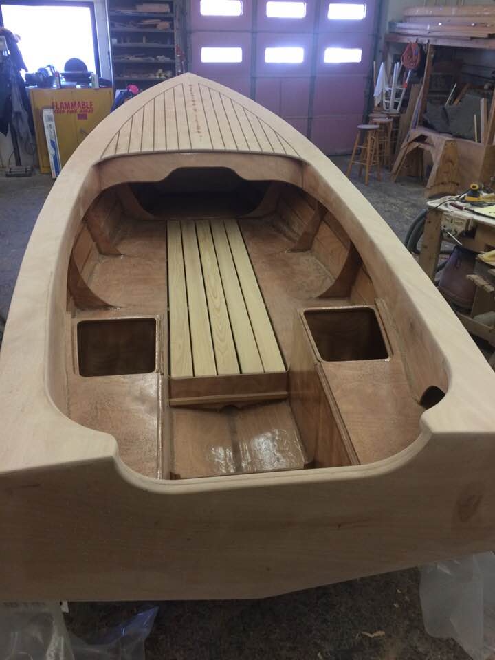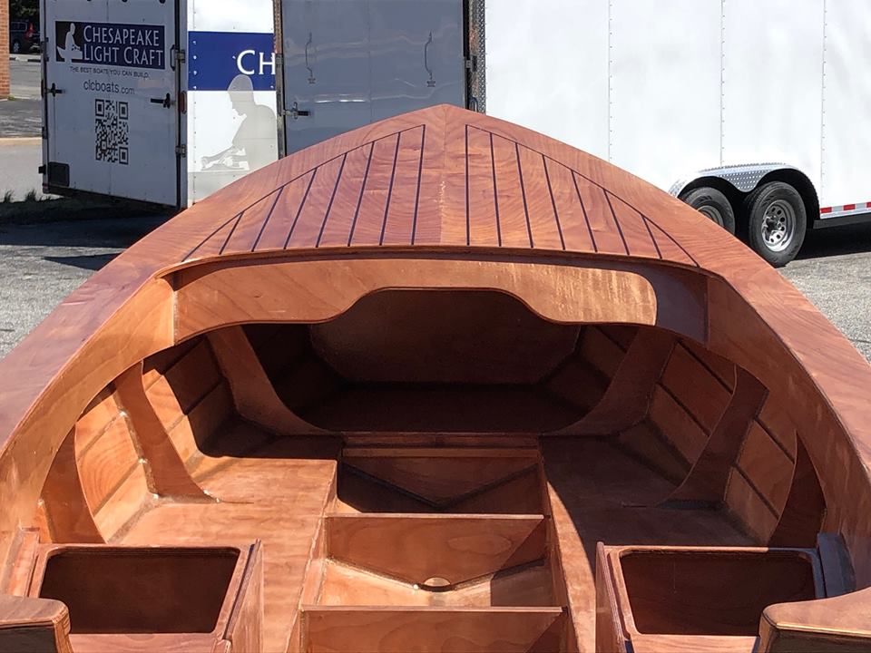 The kit includes CNC-milled grooves in the plywood deck, with dark cedar strips glued in, calling traditional runabout decking to mind. Builders can choose the kit with integral wooden seats, or, those who prefer aftermarket seats, can order a kit with no seats.