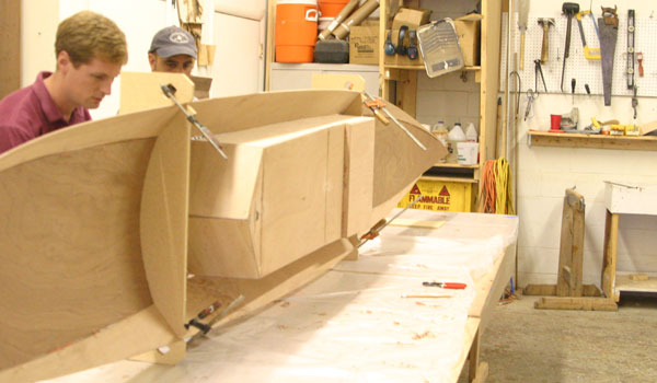 The Sea Island is essentially identical in construction to many other CLC boats. Convenient features include “puzzle joints” for rapid assembly of computer-cut hull panels, and computer-drilled holes for most of the copper stitches used in assembly. Parts are located in the hull with pre-drilled holes, so in theory you could build the entire boat without picking up a tape measure. Total construction time is about 80 hours, much like our other kayak kits.