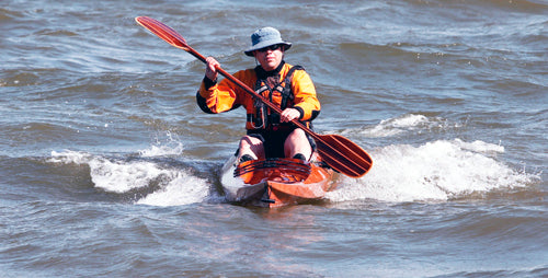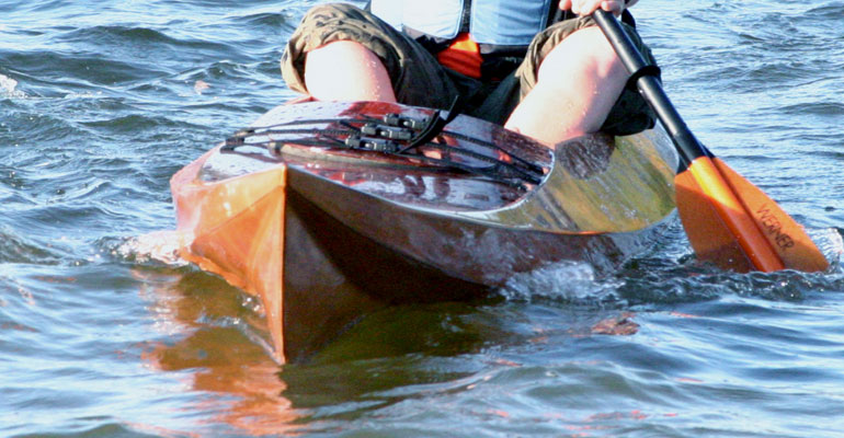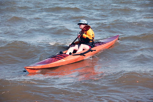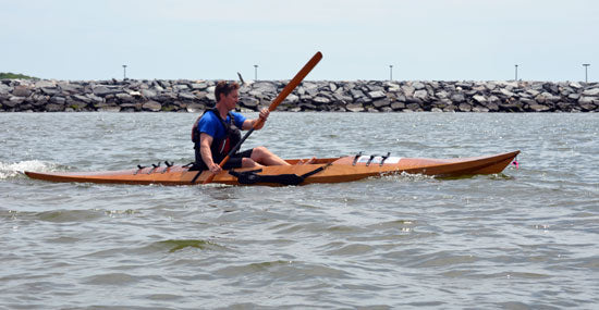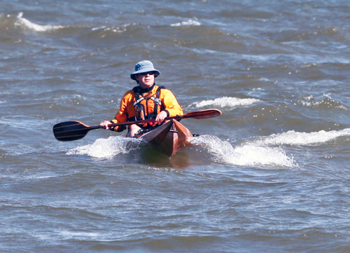 The Sea Island's roomy cockpit will fit almost anyone under 275 pounds. Any water that comes in will drain right back out through the bottom of the boat. Nothing confines the paddler. You don’t need to worry about your shoe size, and the “height at knees” measurement is infinite. The boat is easy to get into, and for fishermen, stability is sufficient you can drop your paddle so you can use both hands to reel in that big striper. In the hot months, you sit in the open air so your legs won’t broil. In cooler weather, the Sea Island’s dry ride will extend your season.