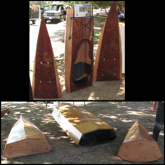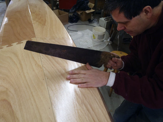 Here's how it works: You build the boat full-length in the usual fashion, but add carefully-designed structural bulkheads at the joints. When nearly done with construction, out comes the saw. Steady now! Cut between the bulkheads to create three watertight pieces. (The cut lines are marked for you in the kits.)
