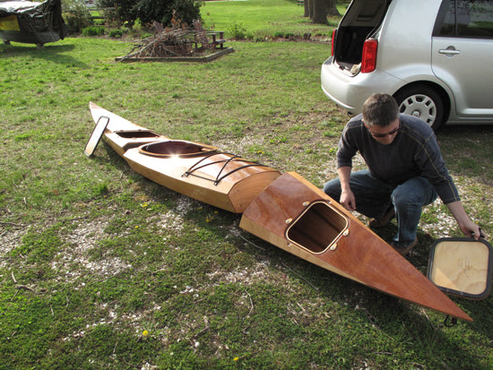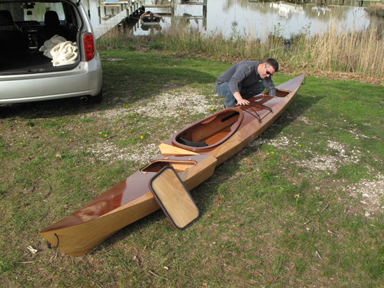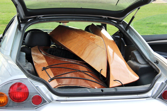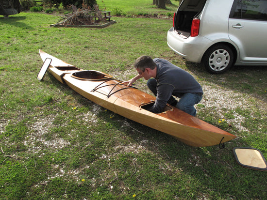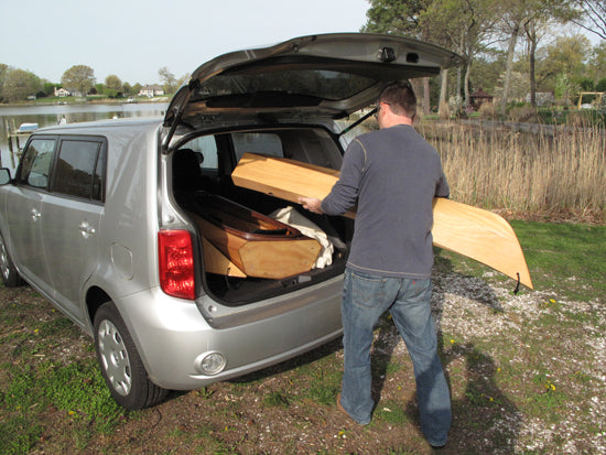 We're still experimenting with different cars, but so far the Shearwater Sectional will fit in most compact hatchbacks, though of course you can transport it fully assembled on conventional roof racks. The obvious application is the paddler with a storage challenge---either an apartment or just limited space. The possibilities are endless, and yes, we expect a few of them to double as bookshelves during the off-season.