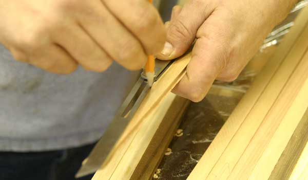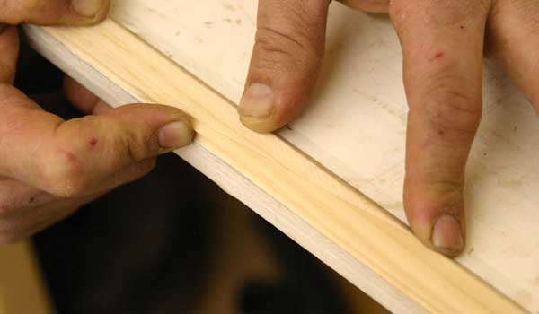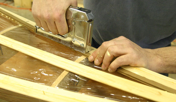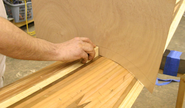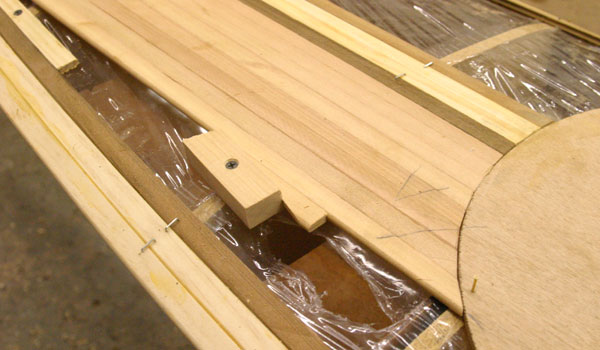 Here’s how it works. The Shearwater Hybrid’s hull is identical to the standard Shearwater’s, with computer-cut BS 1088 Okoume panels assembled with “finger joints” so it goes together very, very quickly. Computer-cut molds are set into the hull with temporary hot glue. These molds shape and support the deck during construction. With the kit, we include 50% Western Red and 50% Alaskan Yellow cedar strips. The strips are milled with a “bead and cove” joint so that one slides into the next for perfect joinery.