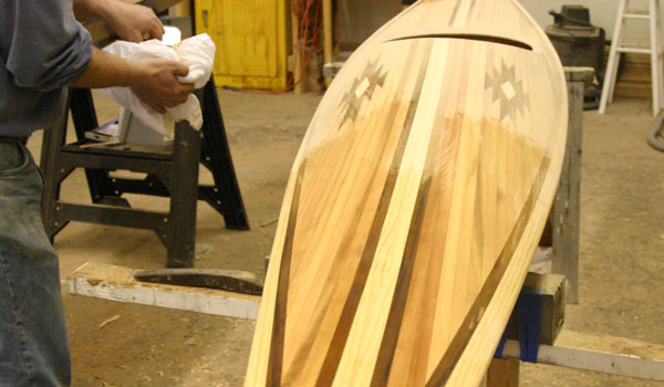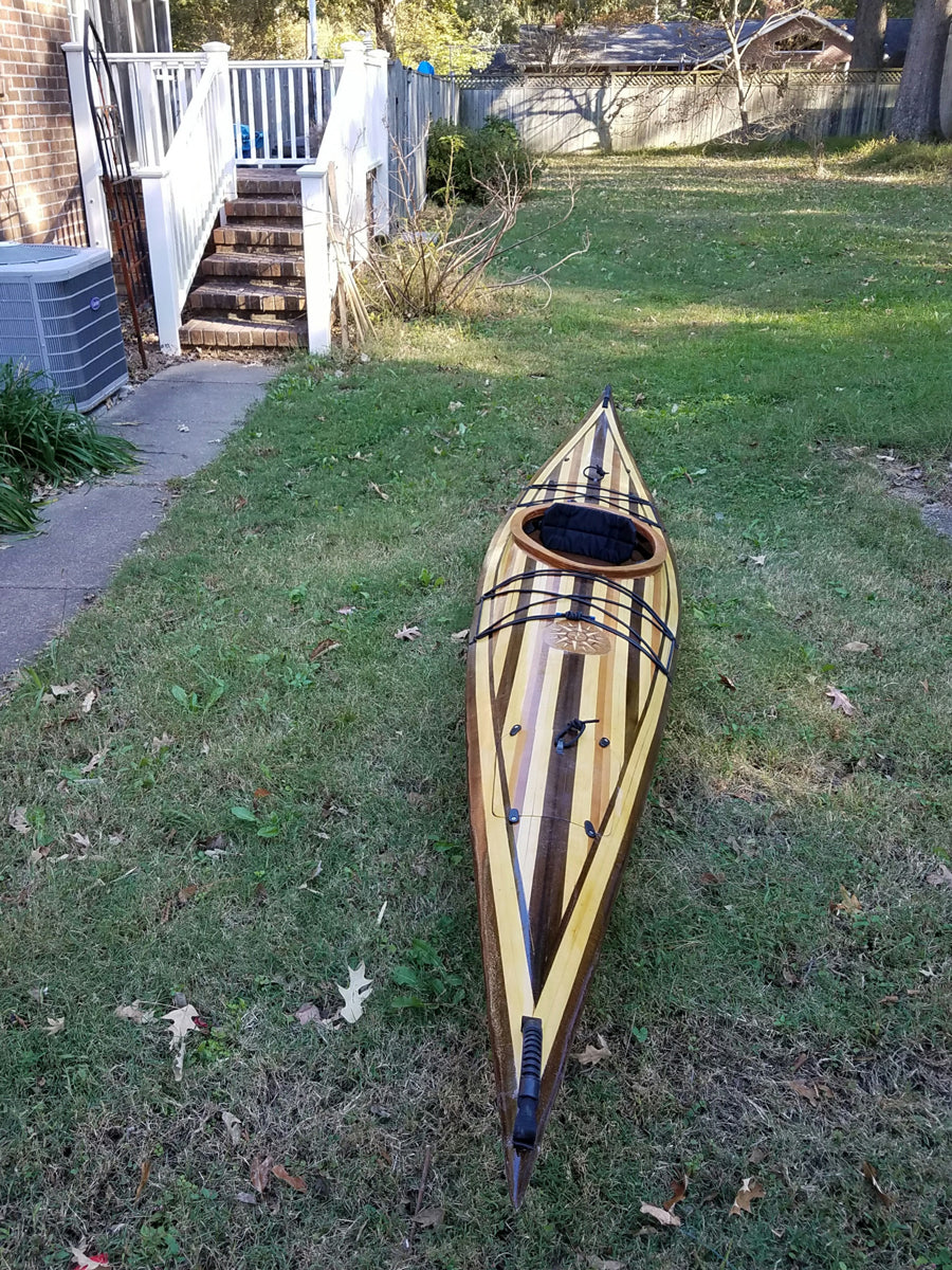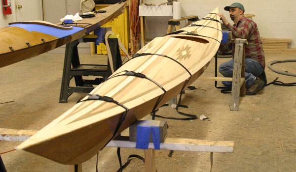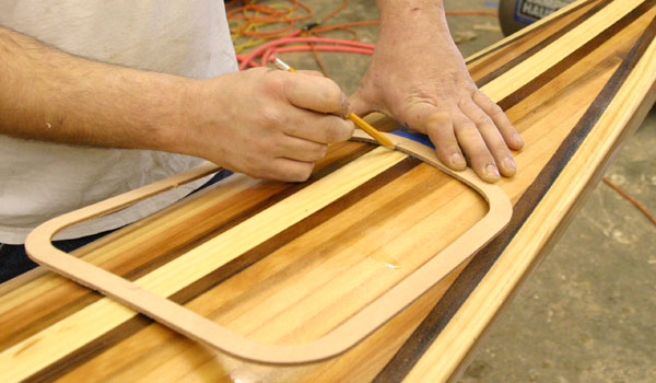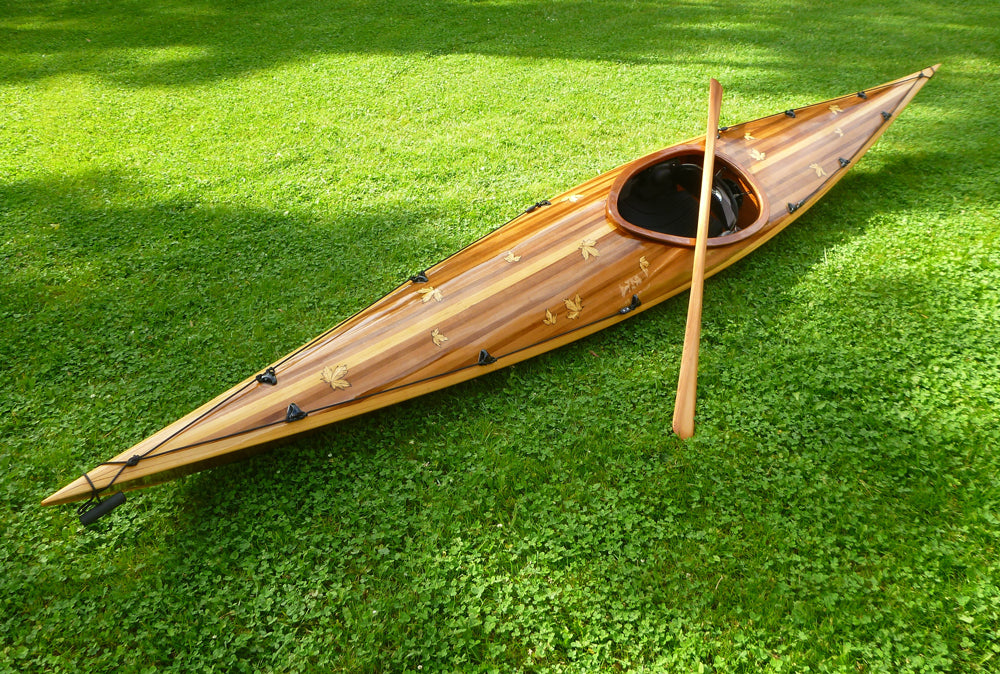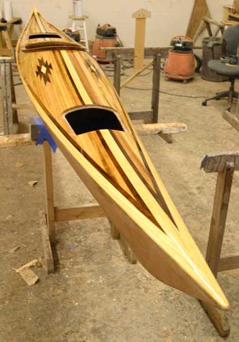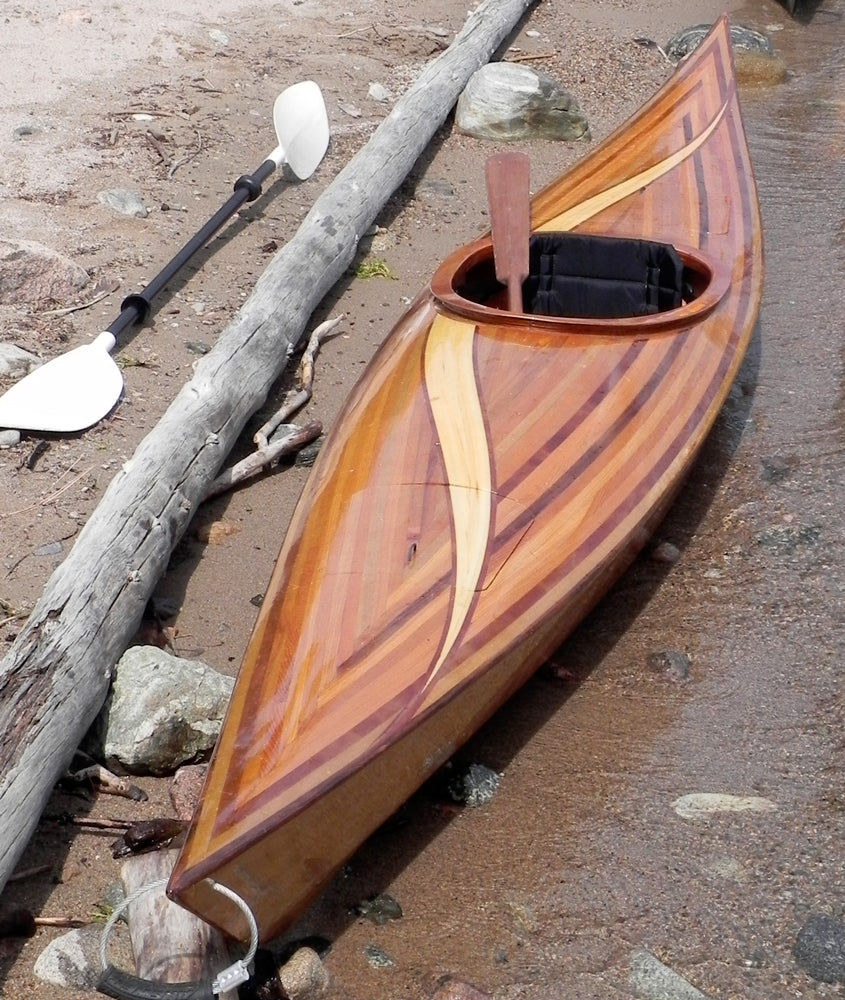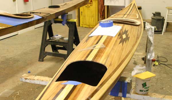 Cedar-strip kayaks are admired for their beauty and functionality. Kayaks made entirely of cedar strips require a “strongback” and special molds, which translates into a lot of skilled labor and time. Why not combine the best qualities of stitch-and-glue plywood kayaks with the beauty of a cedar strip deck?