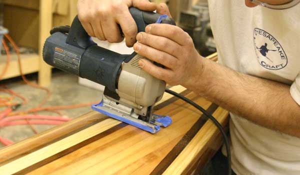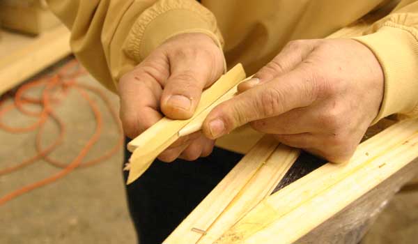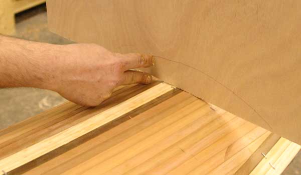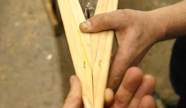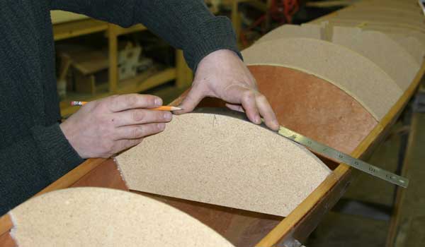 Here’s how it works. The Shearwater Hybrid’s hull is identical to the standard Shearwater’s, with computer-cut BS 1088 Okoume panels assembled with “finger joints” so it goes together very, very quickly. Computer-cut molds are set into the hull with temporary hot glue. These molds shape and support the deck during construction. With the kit, we include 50% Western Red and 50% Alaskan Yellow cedar strips. The strips are milled with a “bead and cove” joint so that one slides into the next for perfect joinery.