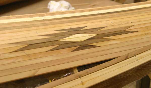 Our strip-built and hybrid kits ship with 50% Western Red and 50% Alaskan Yellow cedar bead & cove strips. Photos on our website and printed materials may show patterns and accent strips with walnut or other materials. Optional walnut strips are available and can be shipped with kit orders.