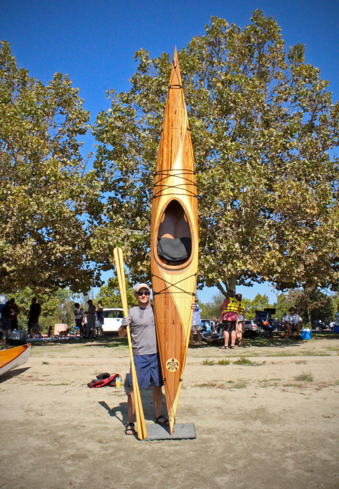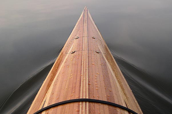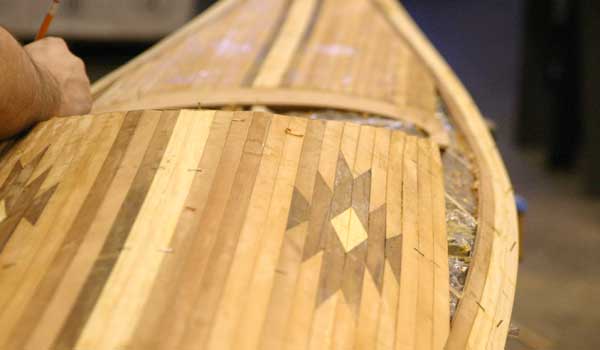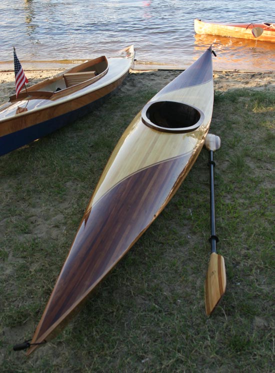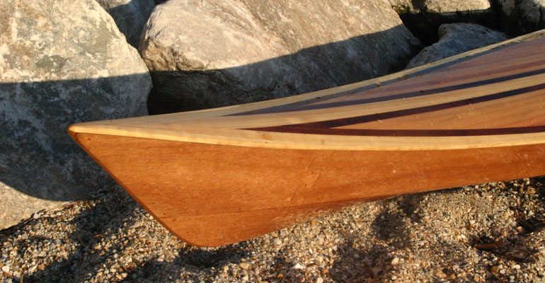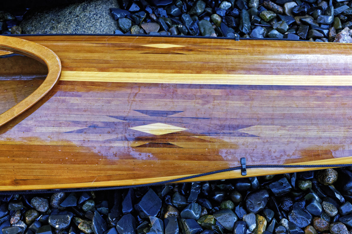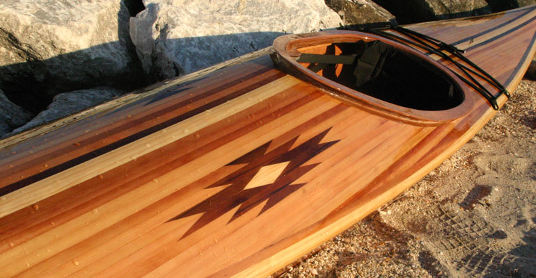 Cedar-strip kayaks are admired for their beauty and functionality. Kayaks made entirely of cedar strips require a “strongback” and special molds, which translates into a lot of skilled labor and time. Why not combine the best qualities of stitch-and-glue plywood kayaks with the beauty of a cedar-strip deck?