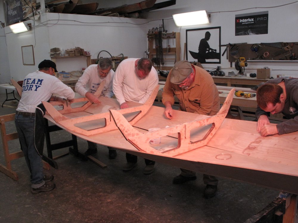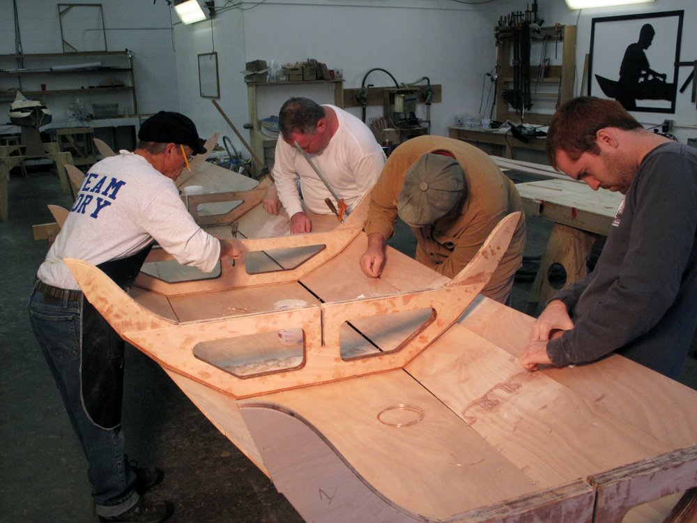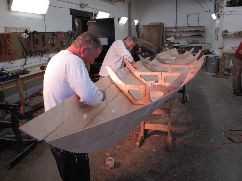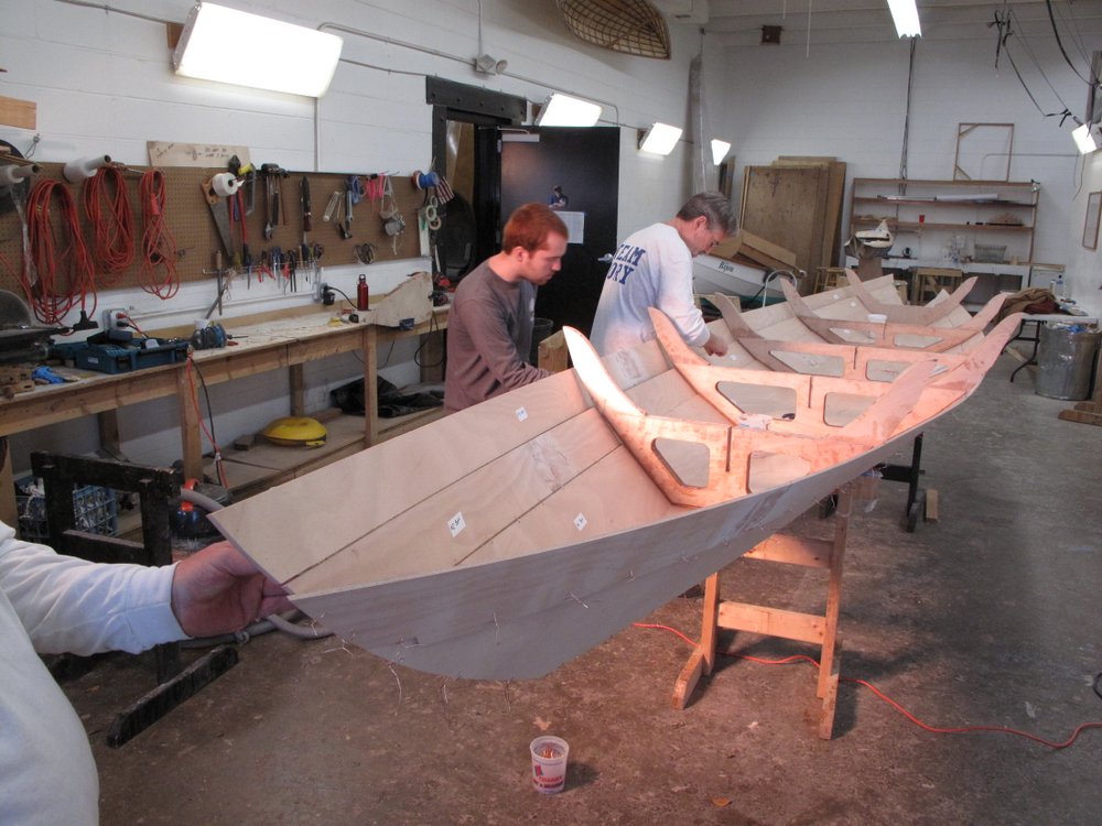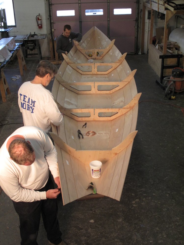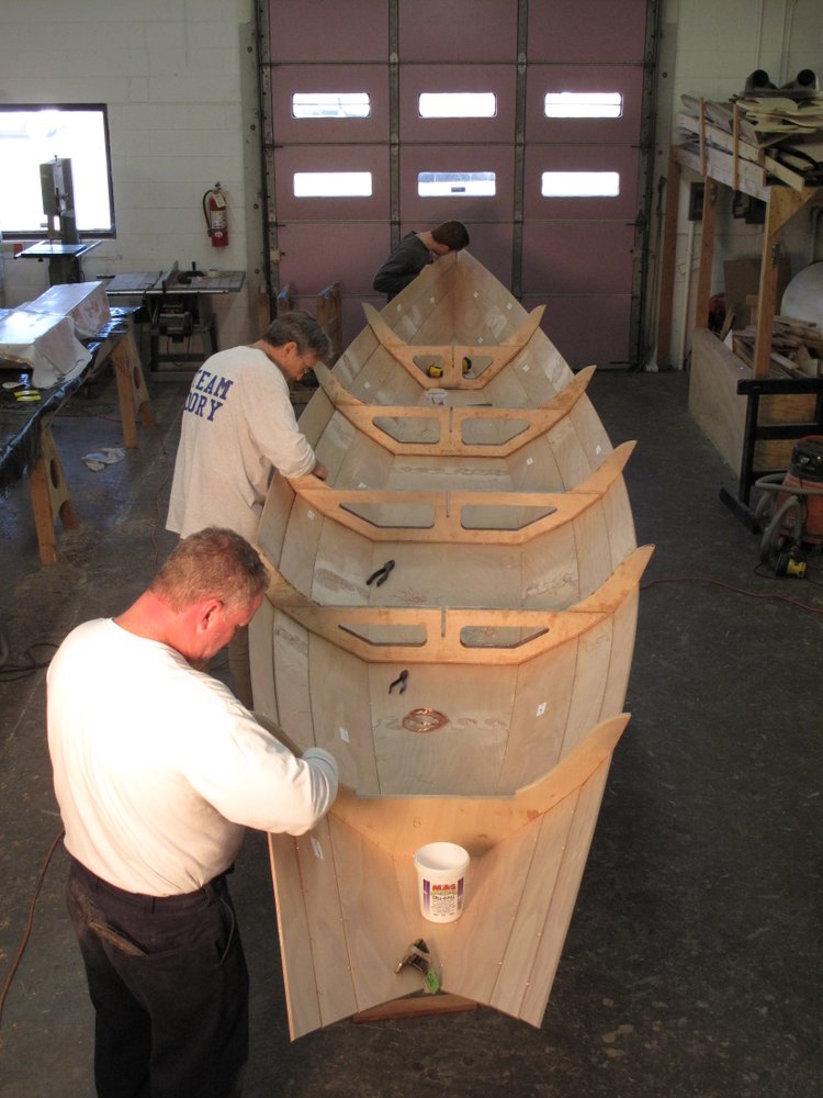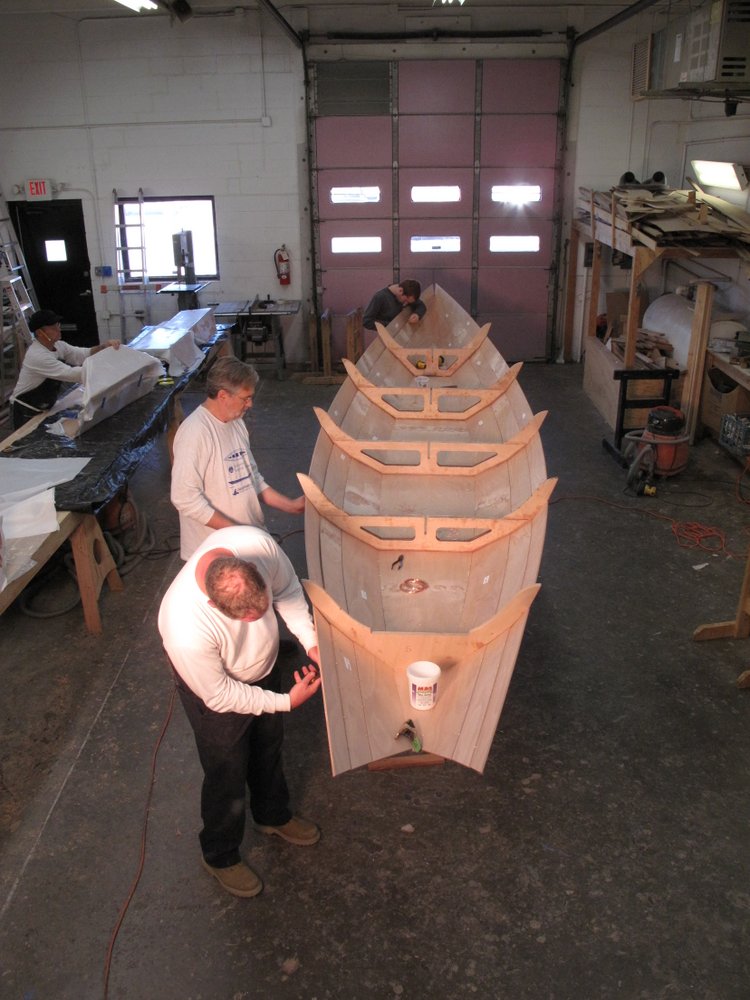 We've fixed that. The CLC Team Dory kit is suitable for amateur construction. A team of volunteers can build the hull in about 50 hours, plus another two or three weeks of part-time sanding and finishing. Total build time is 120-150 hours. The ease of construction and complete kit cost under $5,000 is a low barrier to entry. With sufficient space and volunteers. it would be plausible to build two or three of these in as little as a month, creating a fleet that's ready for competition, training, or adventure. Epoxy coating, strategically reinforced with fiberglass, keeps your maintenance chores near zero.