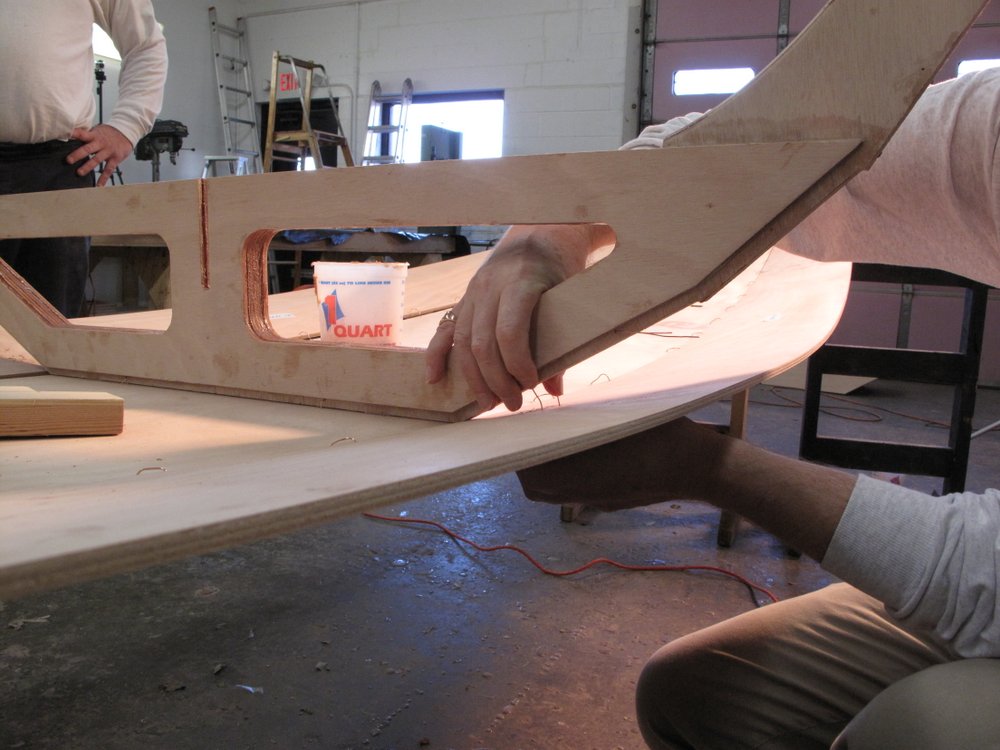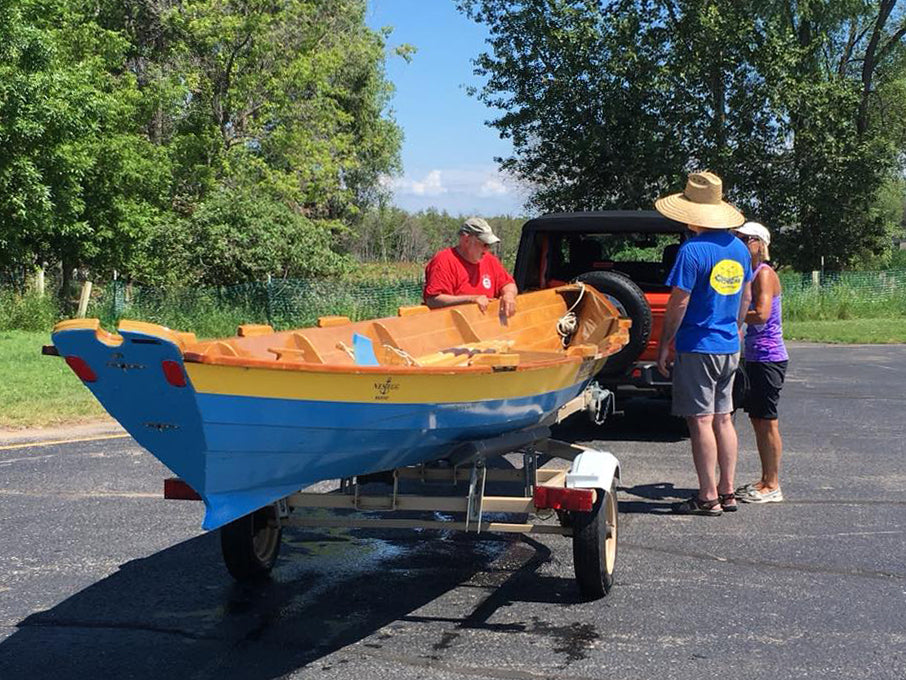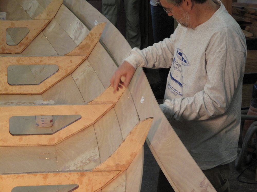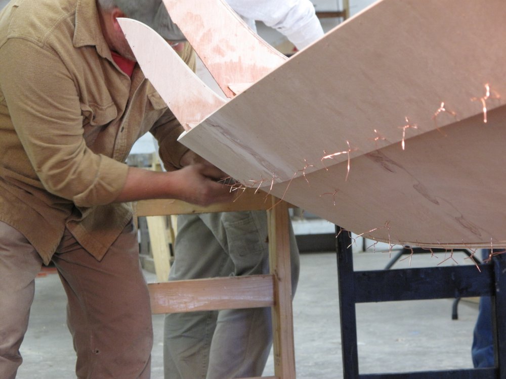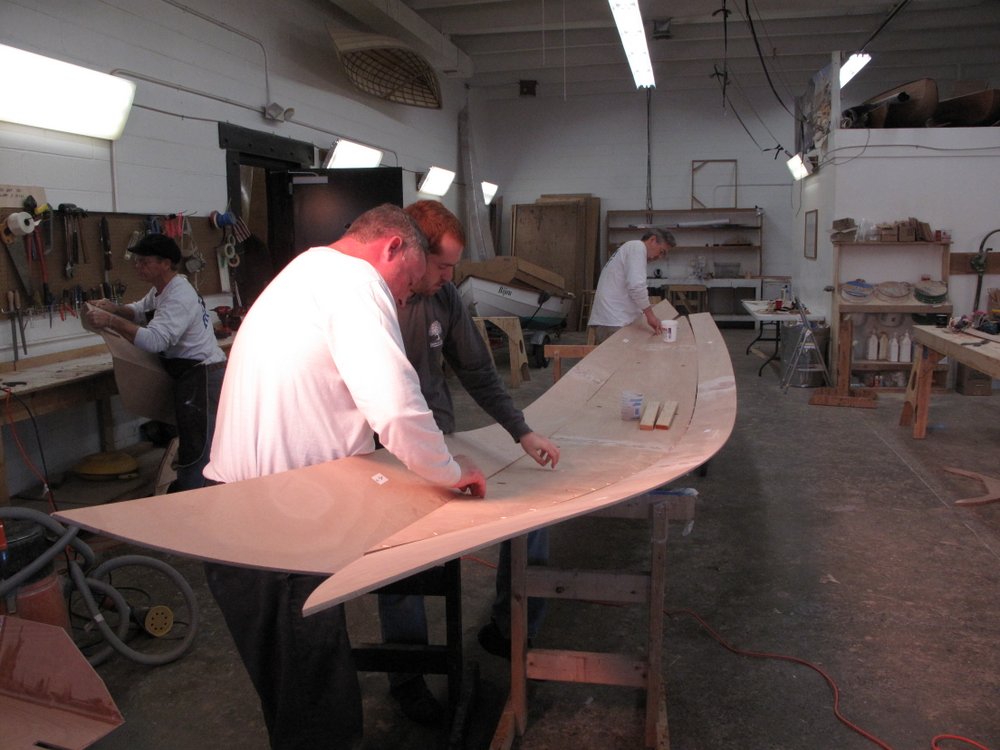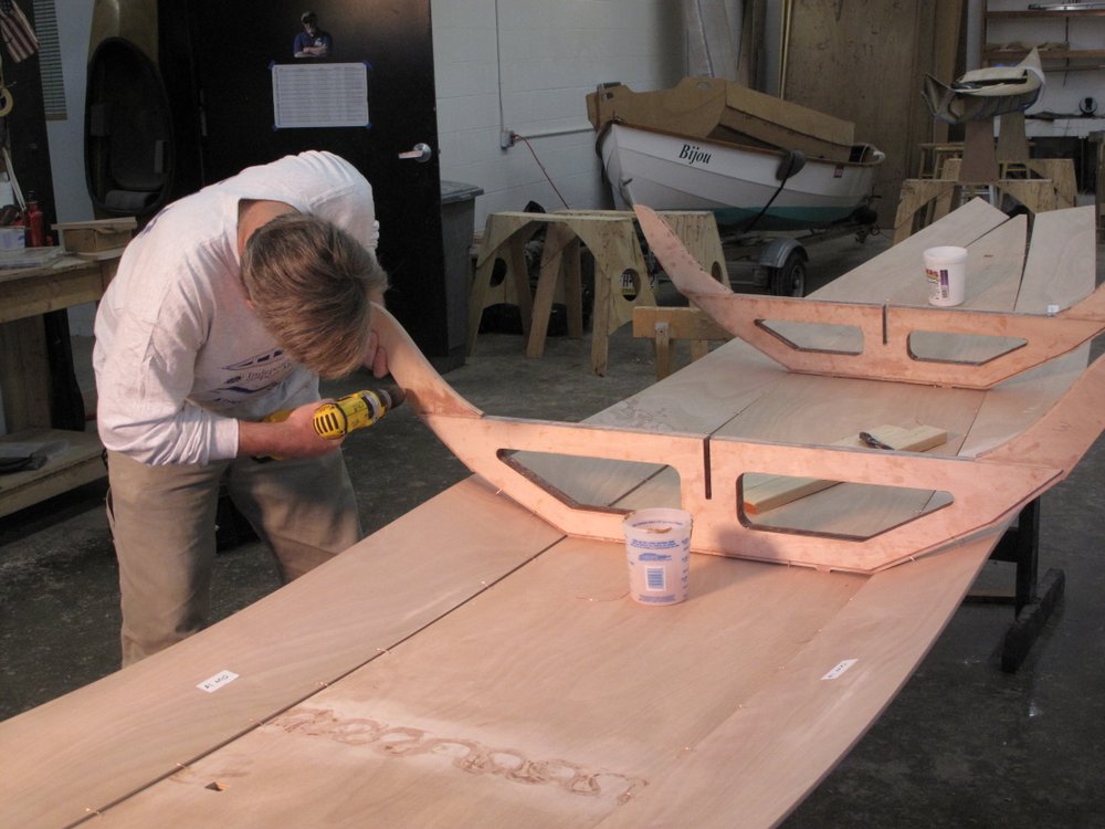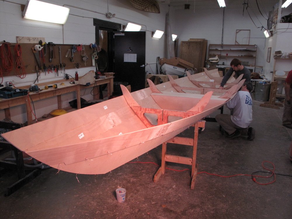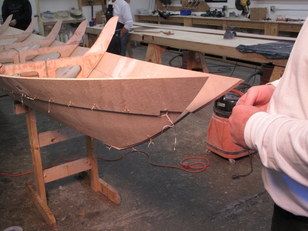 We've fixed that. The CLC Team Dory kit is suitable for amateur construction. A team of volunteers can build the hull in about 50 hours, plus another two or three weeks of part-time sanding and finishing. Total build time is 120-150 hours. The ease of construction and complete kit cost under $5,000 is a low barrier to entry. With sufficient space and volunteers. it would be plausible to build two or three of these in as little as a month, creating a fleet that's ready for competition, training, or adventure. Epoxy coating, strategically reinforced with fiberglass, keeps your maintenance chores near zero.