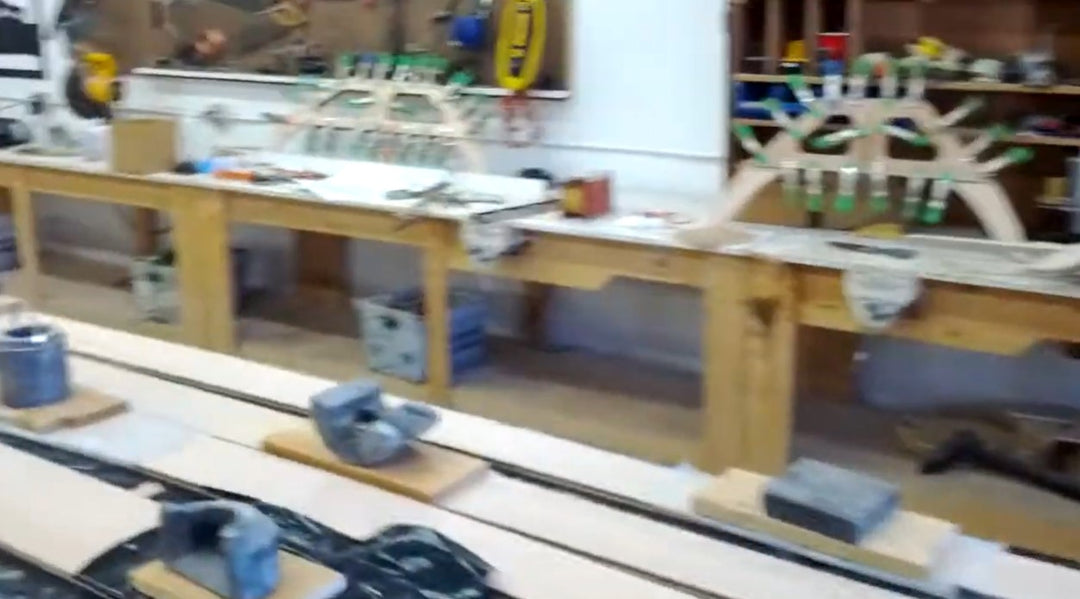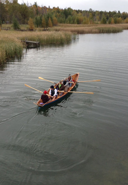 Speeds range from 5-8 knots depending on crew skill and sea conditions. After some experimentation, 10'6" sweeps seem like the best fit for the boat. The kit includes full-sized patterns and instructions for building your own oars, or you can repurpose sweeps or sculls from rowing shells.