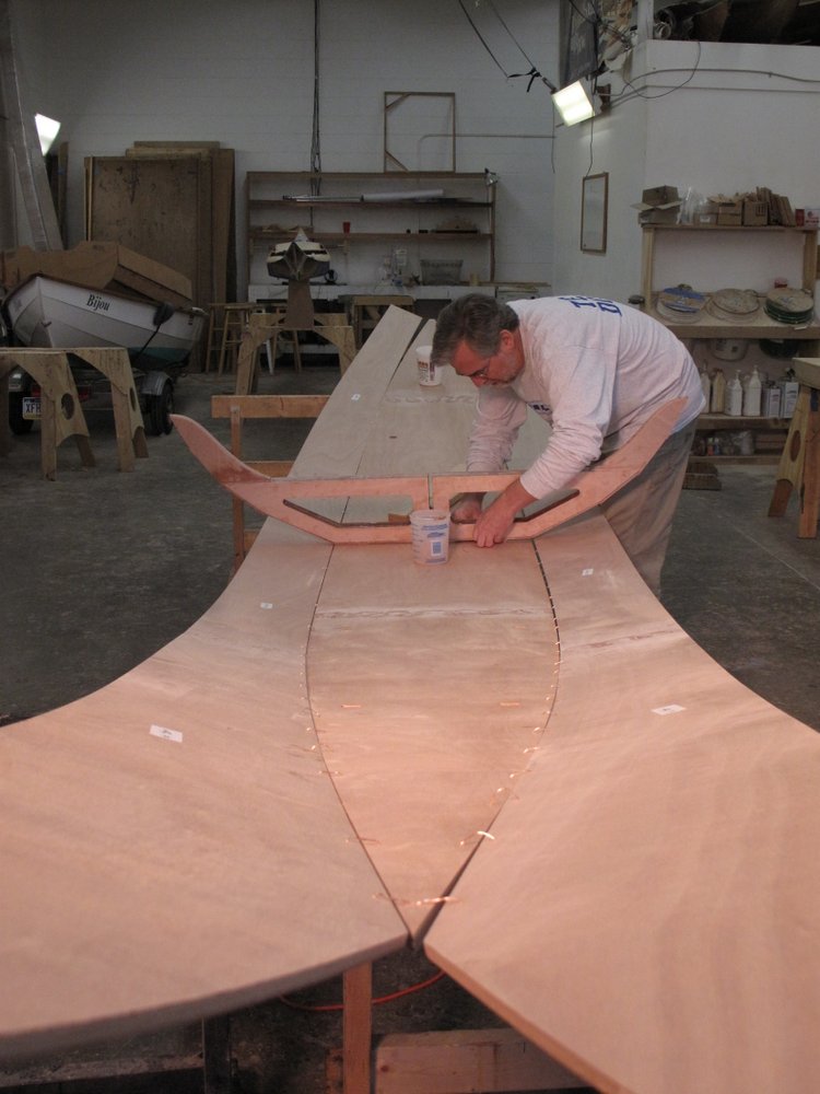 The Team Dory enjoys all of the refinements that make its smaller sister, the Northeaster Dory, so easy to build. All of the parts are cut on our computer, the hull is assembled with our exclusive LapStitch™ scheme, bulkheads are mortised in place, and stitching holes are pre-drilled by the computer. The tight-fitting kit combined with stitch-and-glue construction makes the Team Dory uniquely accessible to amateur rowing clubs and youth groups.