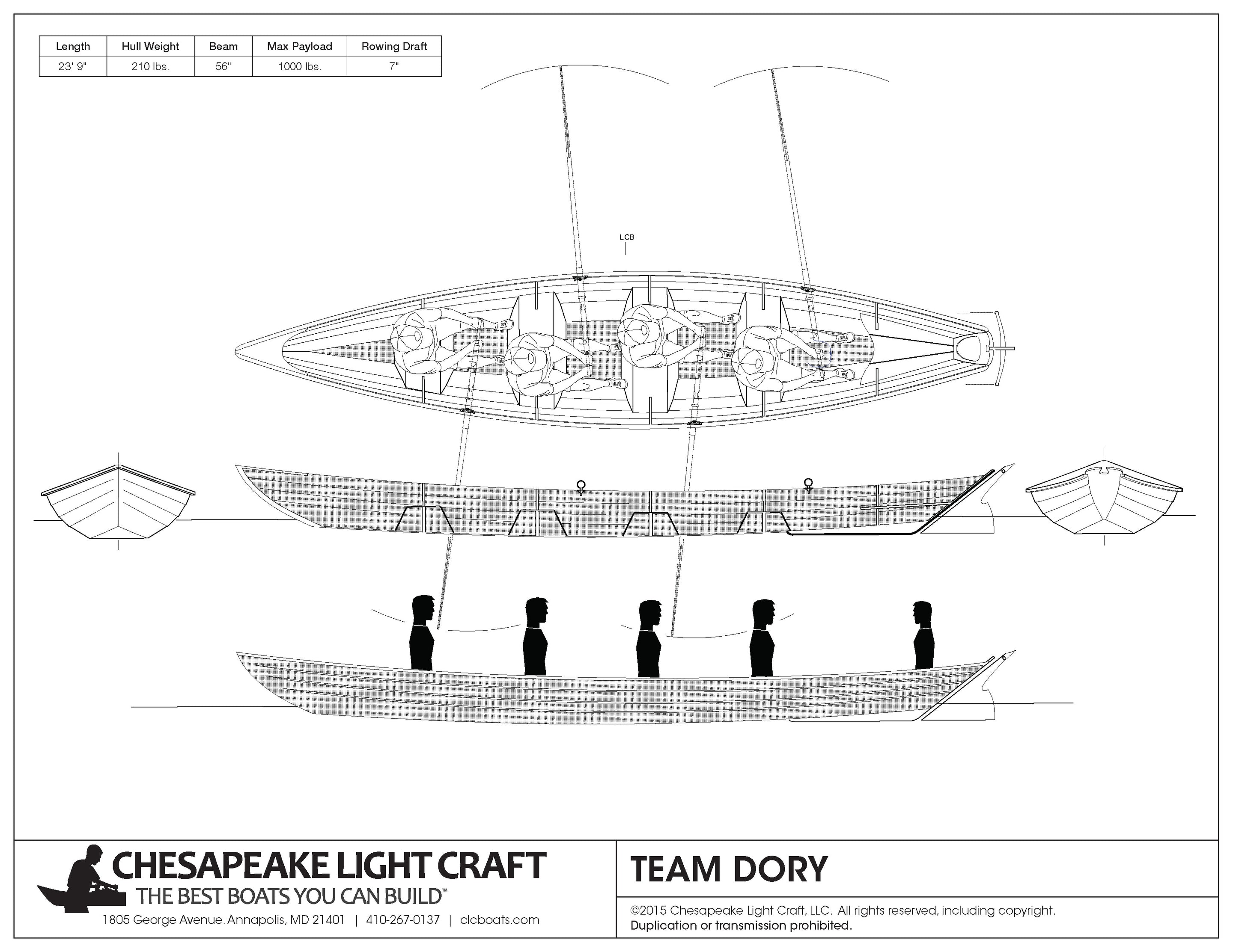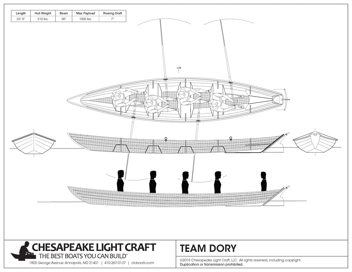 We also offer a larger version of this design, the Team Dory 26, which adds another 400 pounds of payload capacity without being any more difficult to build. If you are interested in the larger Team Dory 26, please shoot us an email: info@clcboats.com