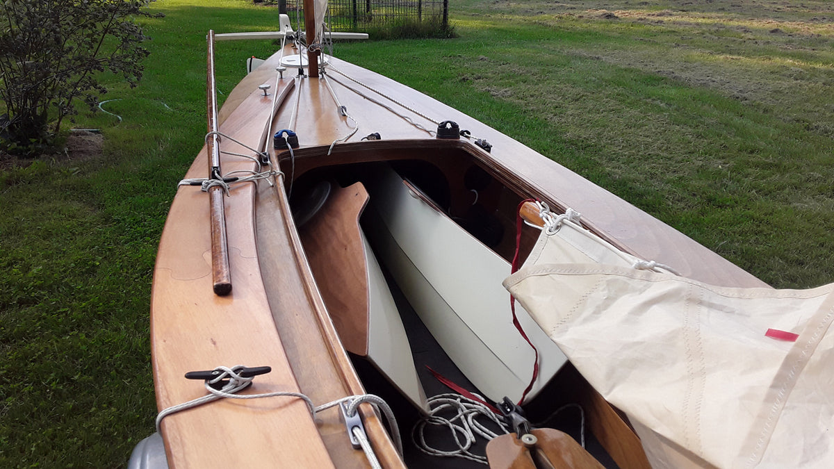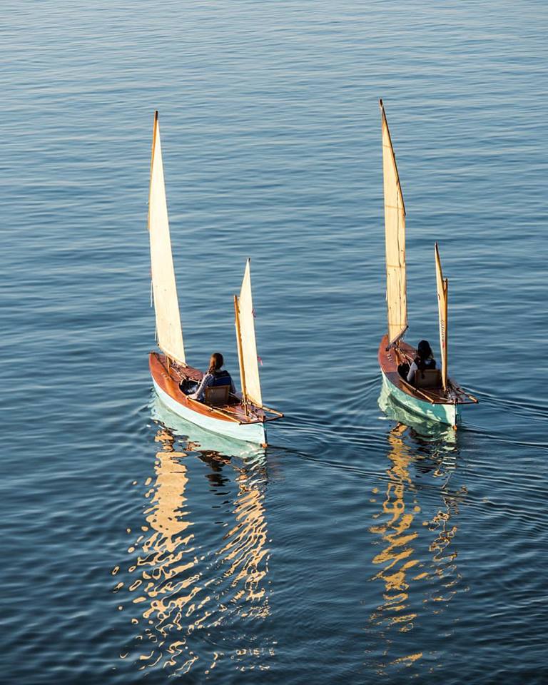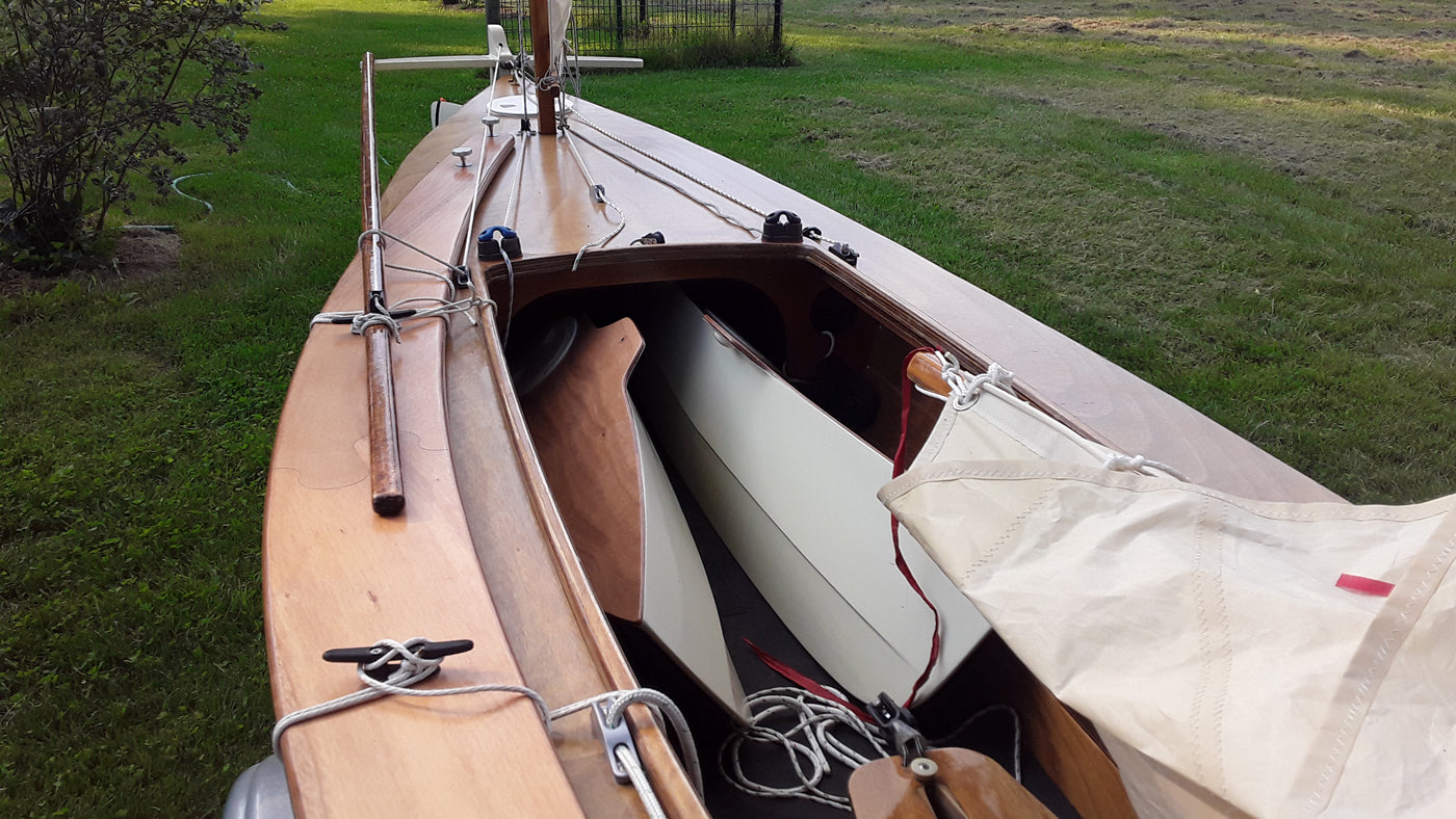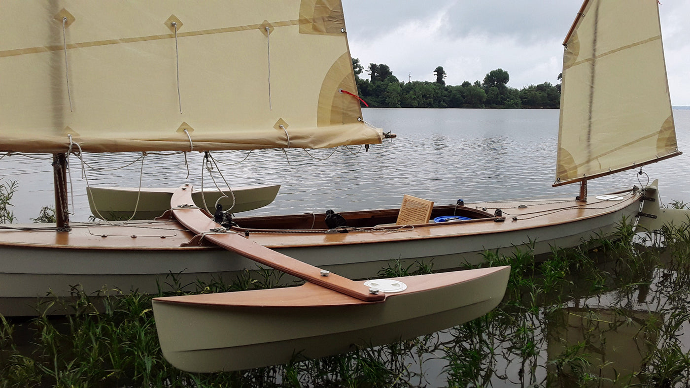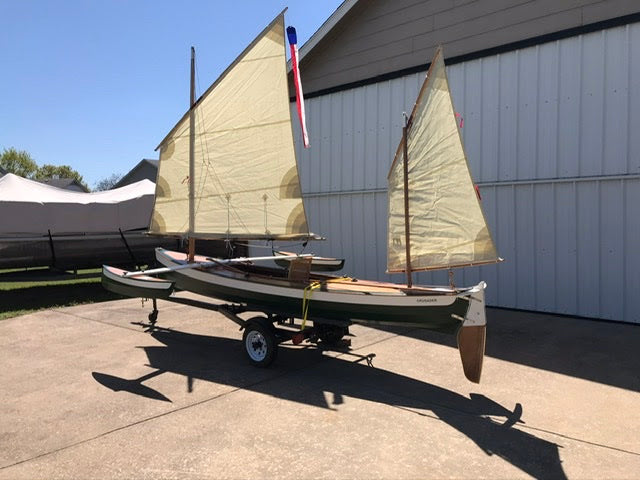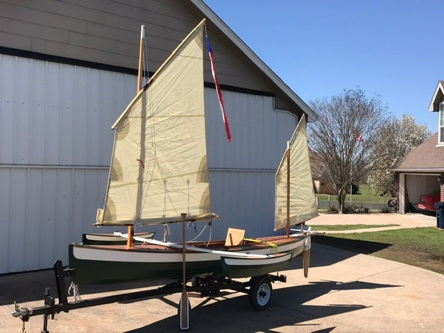 The boats were drawn for Waterlust by CLC's own Dillon Majoros. The design takes its cues from classic sailing canoes of the late 19th century. Dillon has added a higher volume hull with fuller ends for increased carrying capacity, stability, and performance under sail. The hull design includes watertight compartments fore and aft, watertight storage forward of cockpit, and stowage bins port and starboard in the cockpit that double as support rails for the seat. The cockpit extends under the aft deck, and may be used as a berth for the crew. The boat is powered by a yawl rig, which was traditionally used by the type and easy to manage, too.