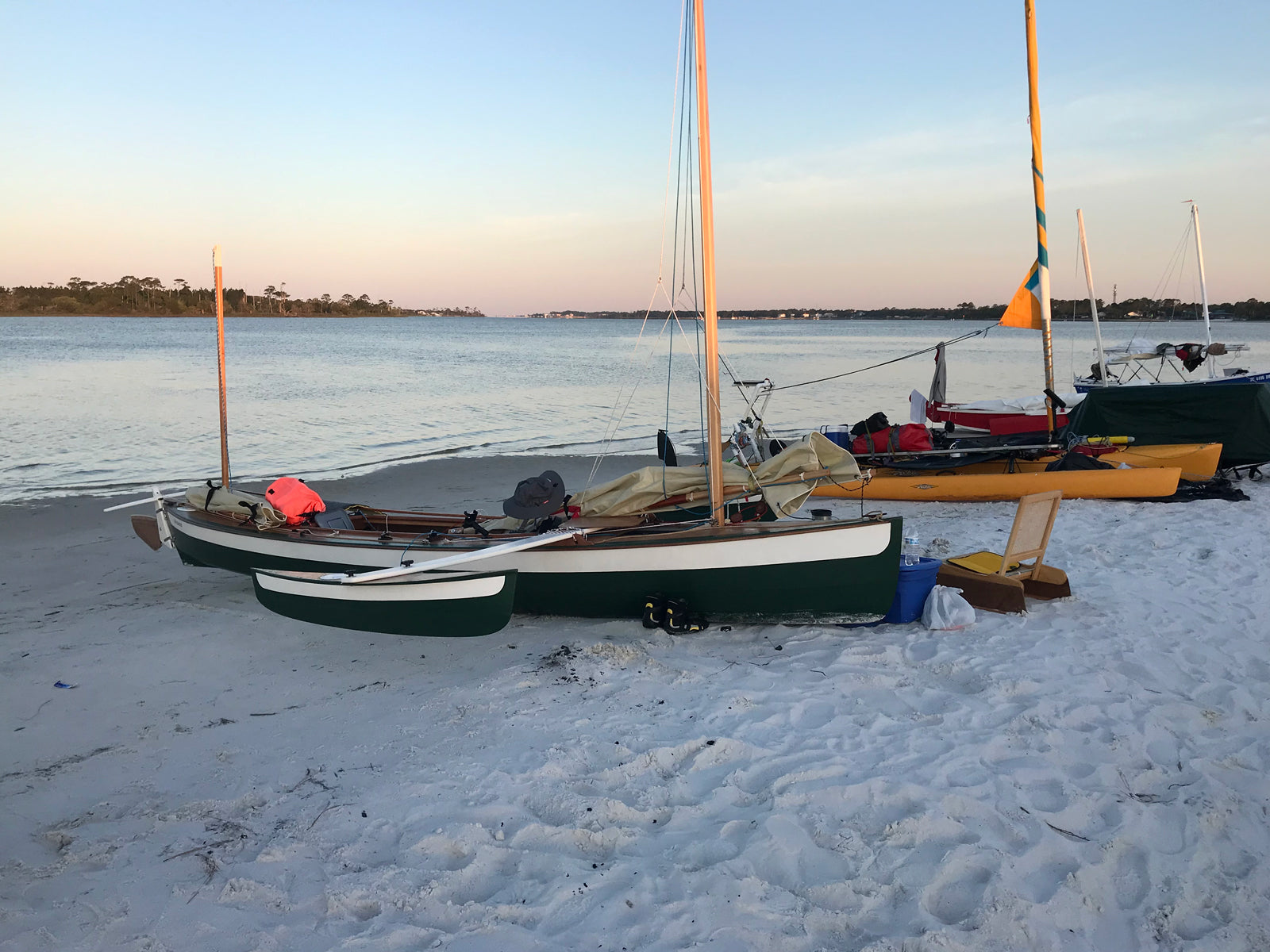 In July 2016, a matched pair of 17-foot sailing canoes were built, finished, and rigged in a marathon three weeks at CLC's factory in Annapolis, Maryland. The Waterlust crew set off for Miami that August, cameras rolling. The long coastal trip was a perfect trial for the new design. They minded the weather, as sailing-canoe voyagers do, including the menacing Hurricane Hermine, but encountered few issues during the trip.