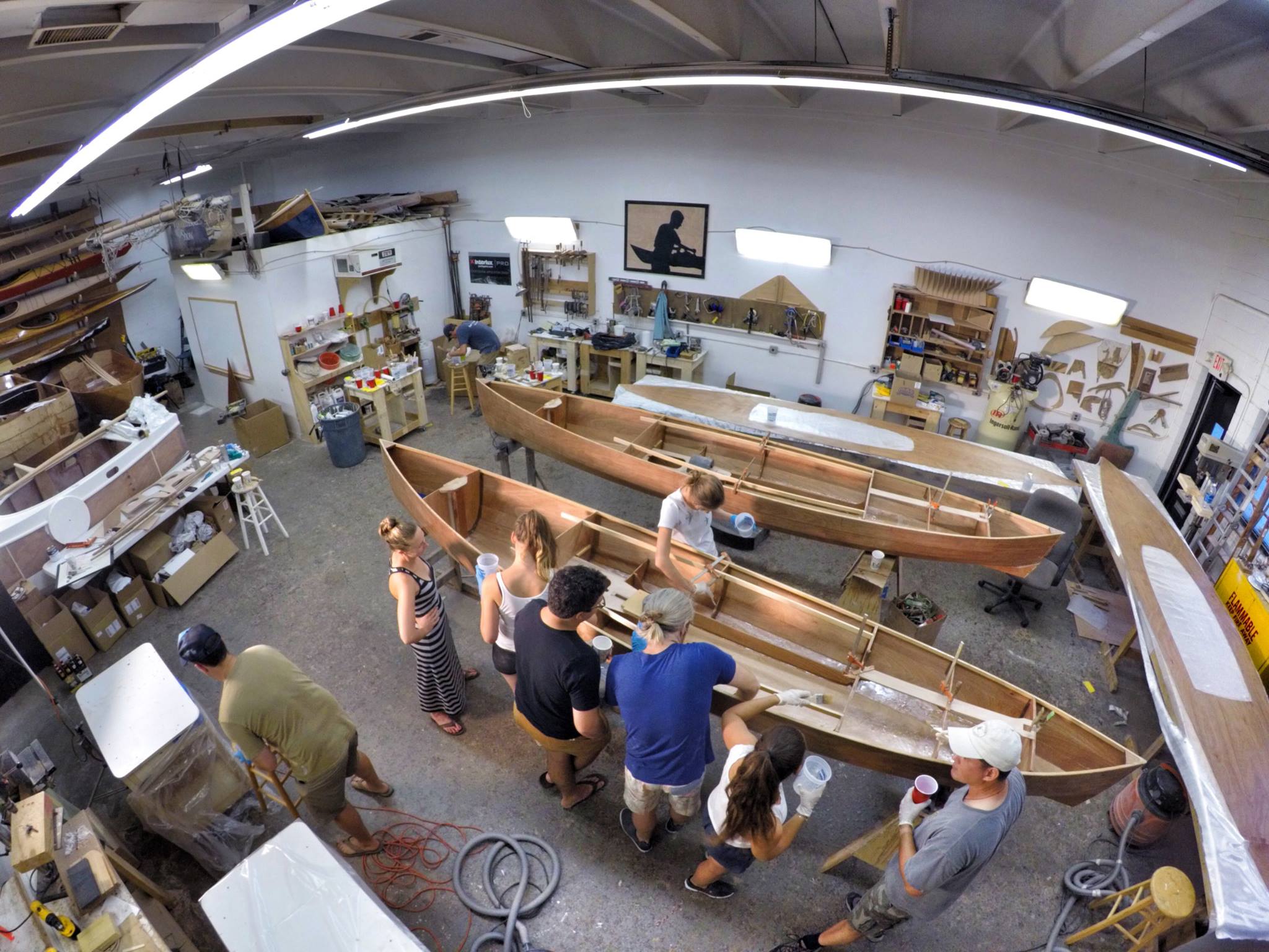 The Waterlust Team asked Chesapeake Light Craft to design this boat. They worked with us in Annapolis for three weeks to build two boats from start to finish. If you would like assistance in building a Waterlust Sailing Canoe of your own, please contact us.