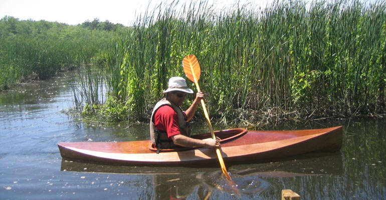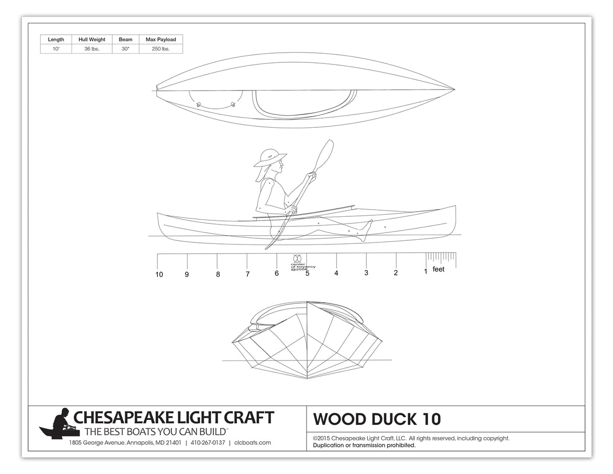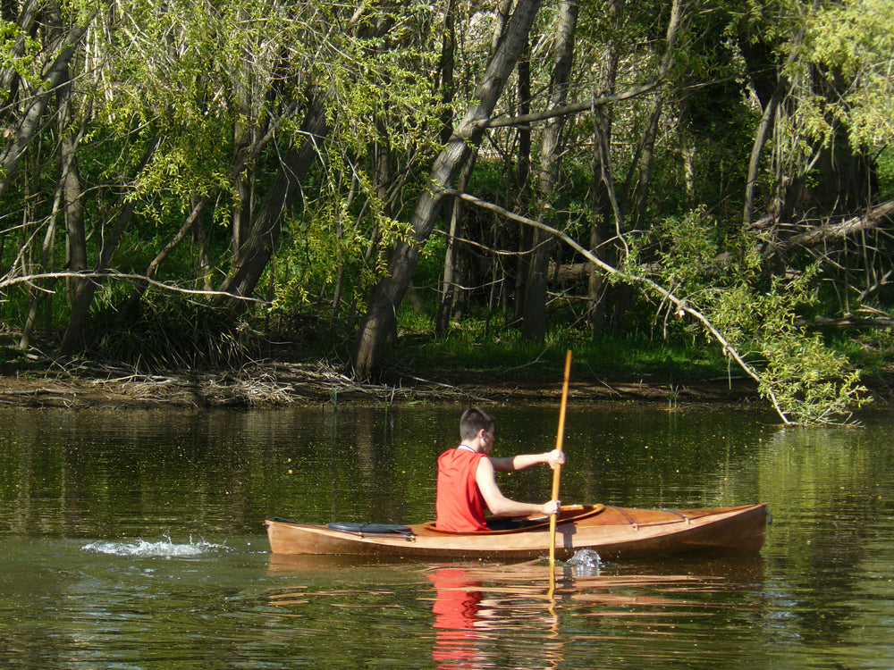 The panels are precision-cut on our computerized equipment, with puzzle-joints and pre-drilled stitching holes for fast and accurate assembly. Sheathed in fiberglass inside and out, the Wood Duck will withstand real-world abuse on gravel or shell beaches, and will bounce over submerged stumps without harm.
